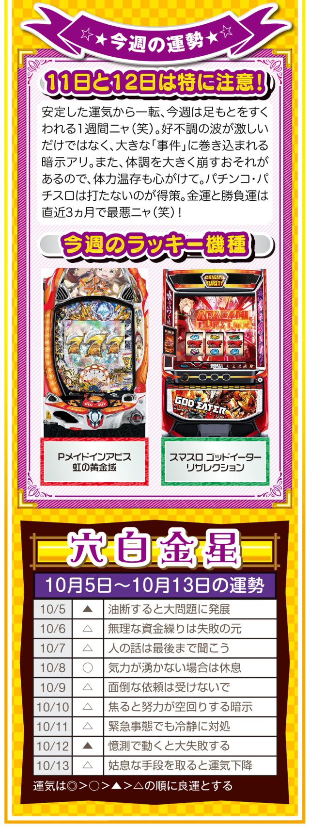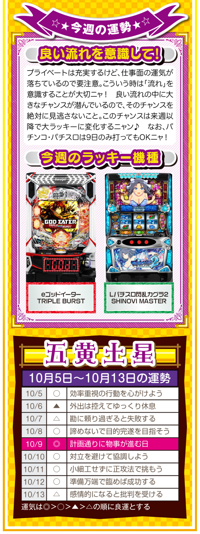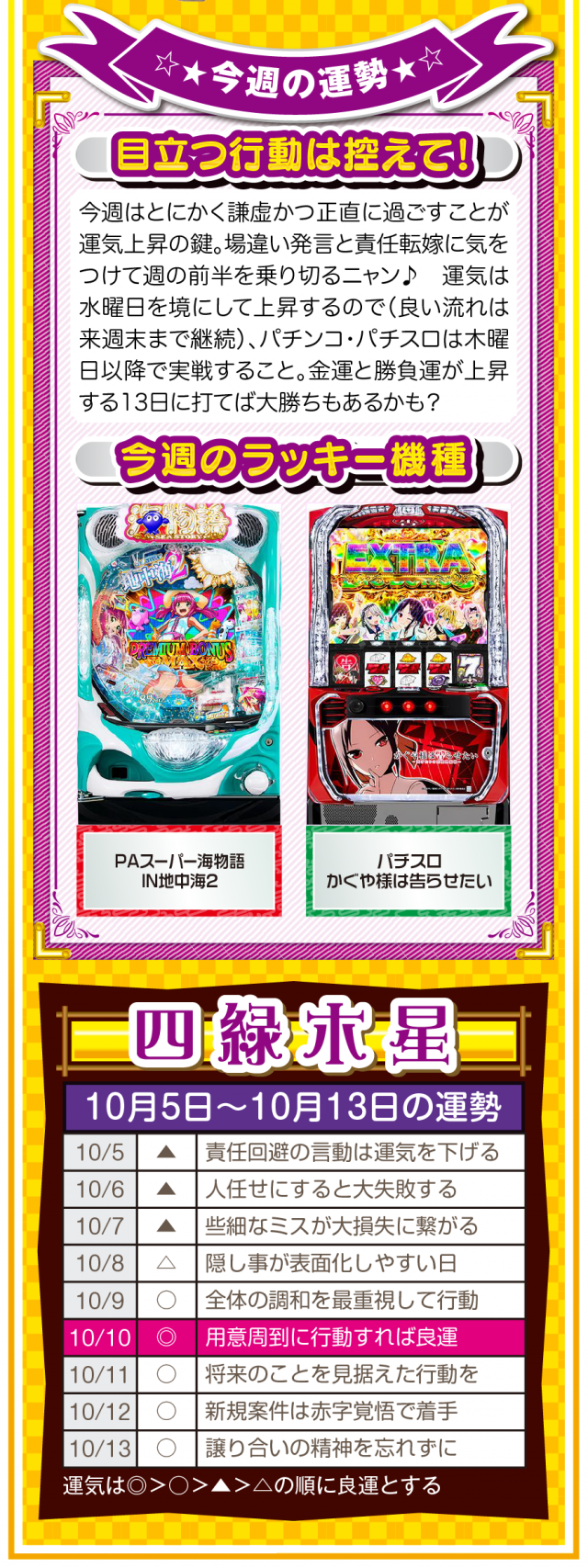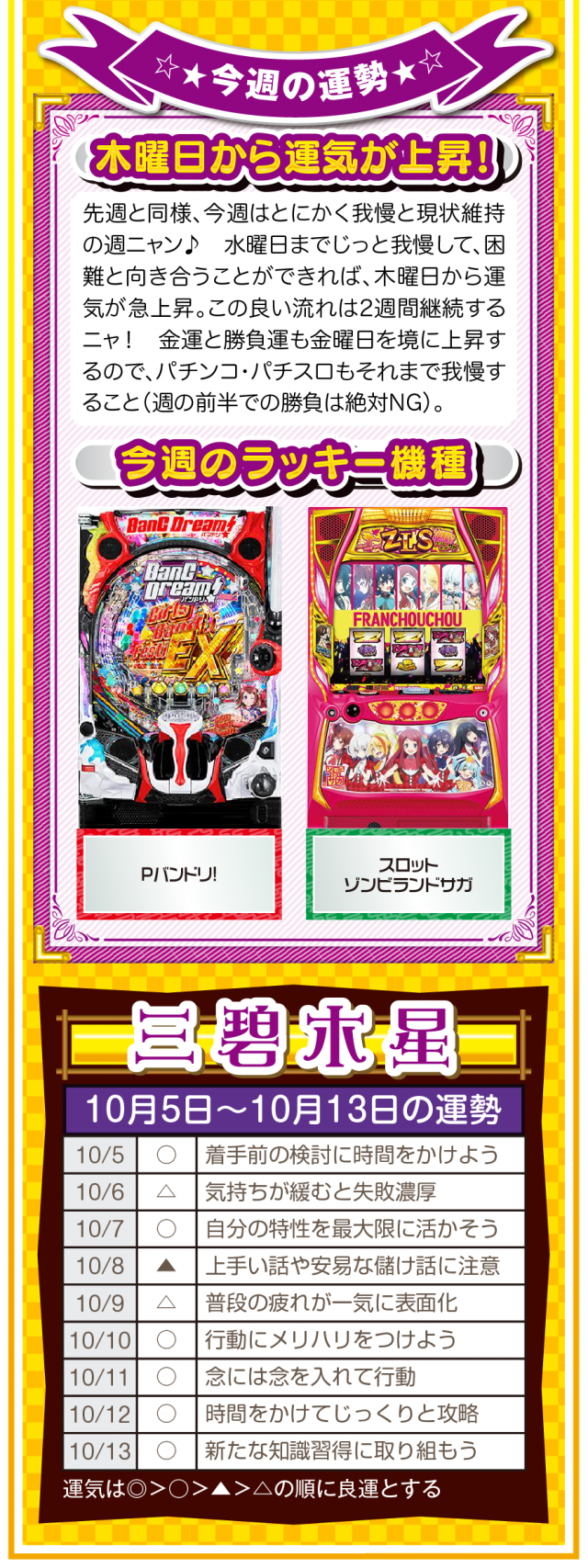「運が良い!」、「今日はめっちゃツイてる!」は魔法の合言葉。意識的な発言は無意識を凌駕することを覚えておいてほしいニャン♪ というわけで早速、10月7日から13日の1週間を鑑定ニャ(恋愛に関するポジティブワードに否定的なフォー・チュンチュンが、今週もオマケとして5日と6日の運勢も鑑定したニャン♡)!