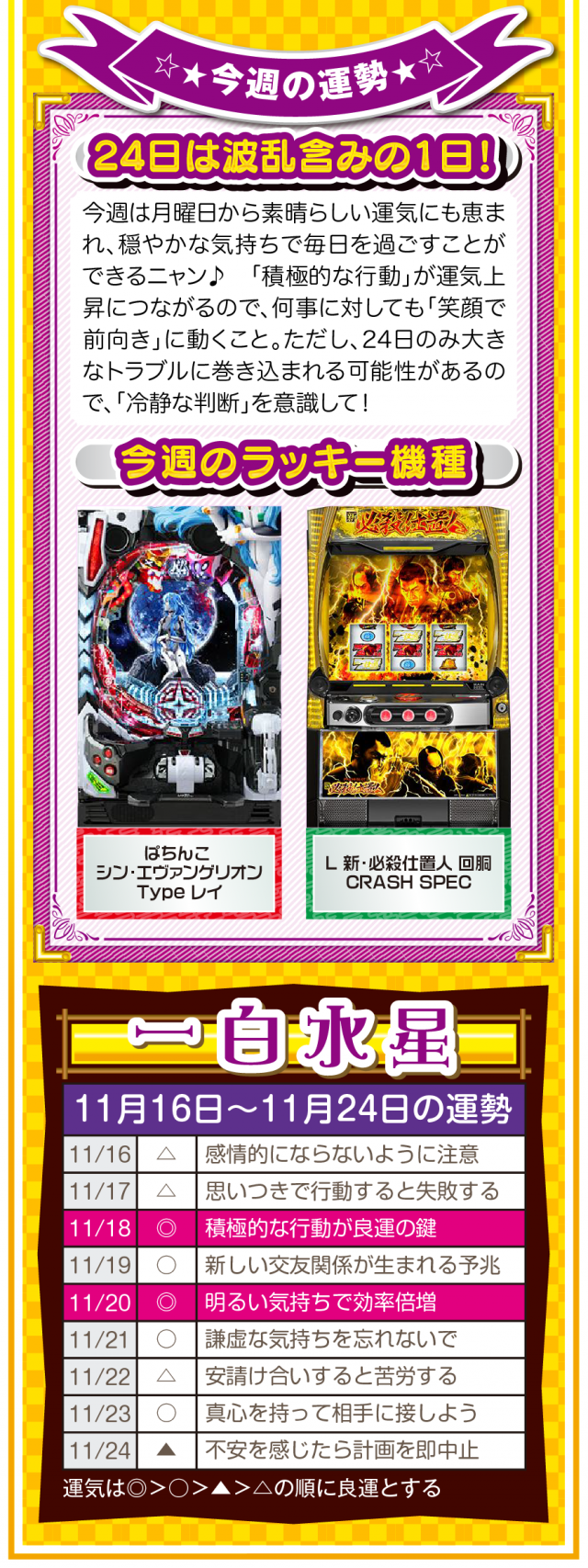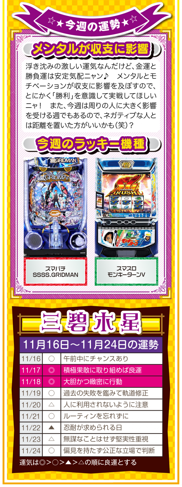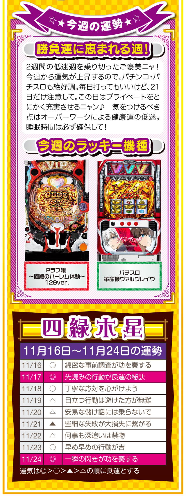 人生、お金だけではないけれど、お金持ちの意見に共感できる人は素直に、ピュアに実践してほしいニャン♪ というわけで早速、11月18日から24日の1週間を鑑定ニャ(ほぼ毎日Netflixのドラマを3時間見ているフォー・チュンチュンが、オマケとして11月16日と17日の運勢も鑑定したニャン♡)!