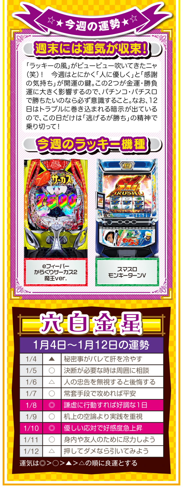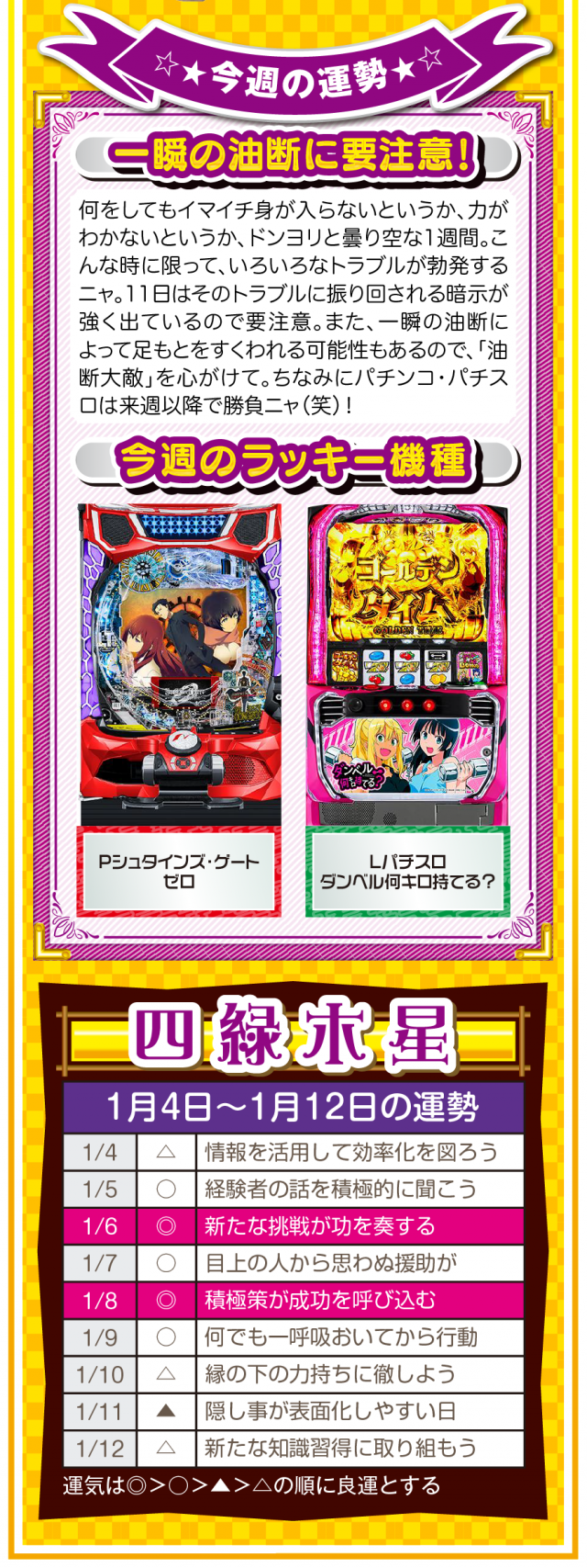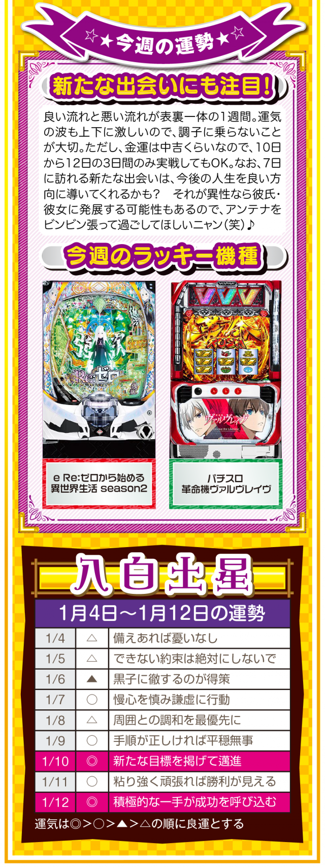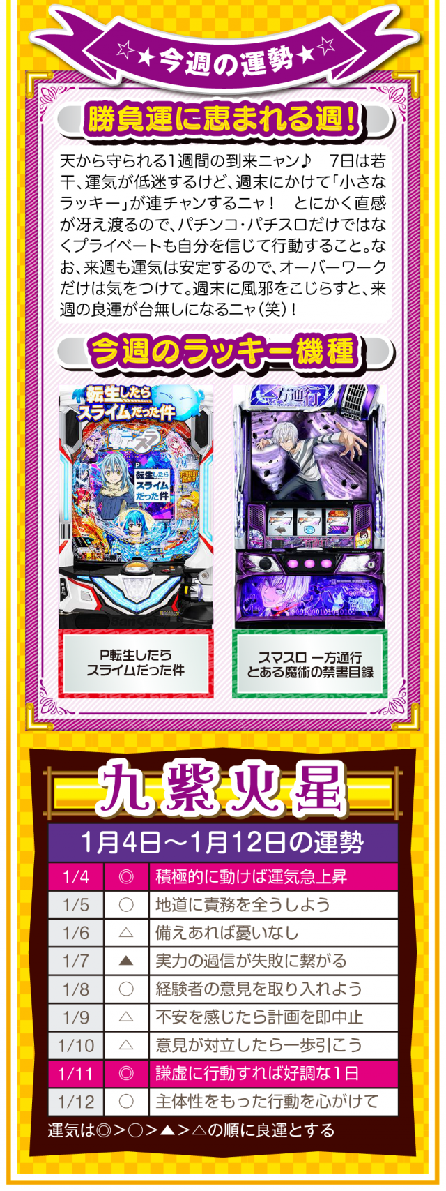 九星気学の新年は2月4日。素晴らしいスタートダッシュを切るためにも、「運」を意識して「運」に好かれる努力をしてほしいニャン♪ というわけで早速、1月6日から1月12日の1週間を鑑定ニャ(他人の目だけはどうしても気になるフォー・チュンチュンが、オマケとして1月4日と5日の運勢も鑑定したニャン♡)!