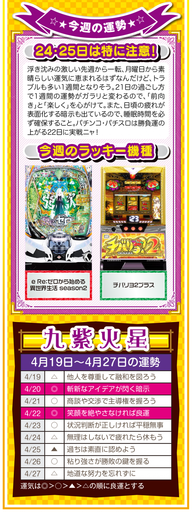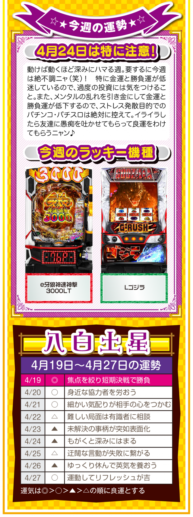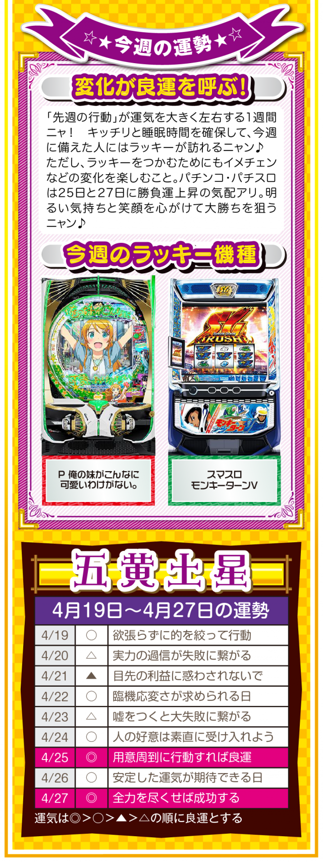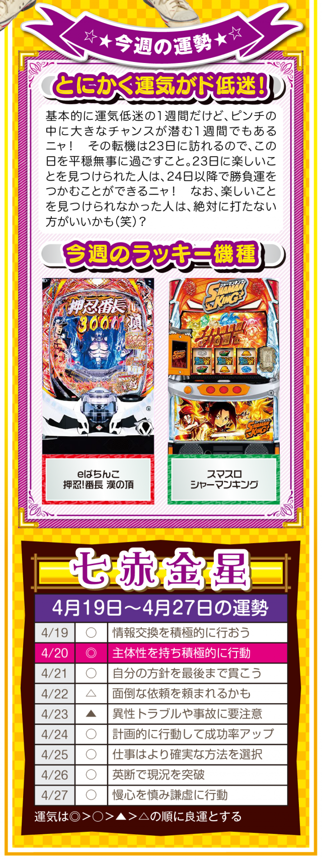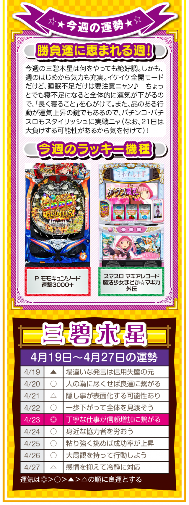 人生はつねに真剣勝負。時間の浪費を少なくすれば、夢や希望もどんどん近付いてくることを覚えておいてほしいニャン♪ というわけで早速、4月21日から27日の1週間を鑑定ニャ(13時間も寝てしまったフォー・チュンチュンが、オマケとして4月19日と20日の運勢も鑑定したニャン♡)!