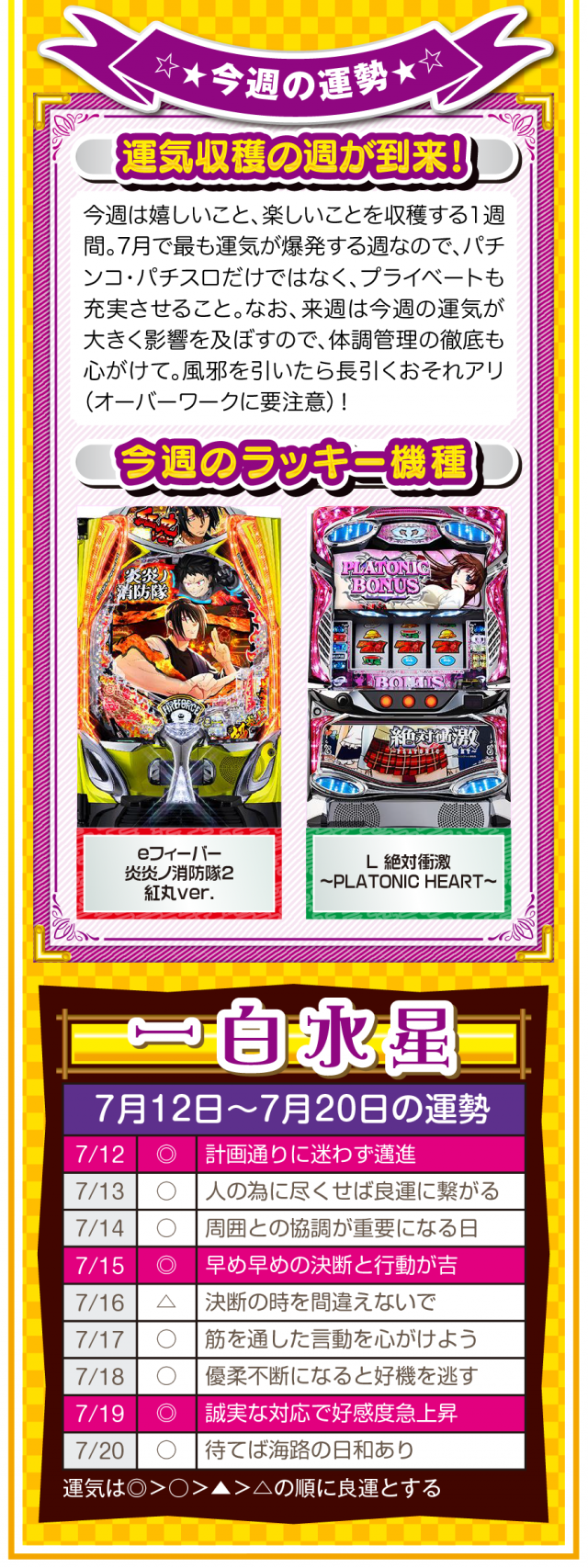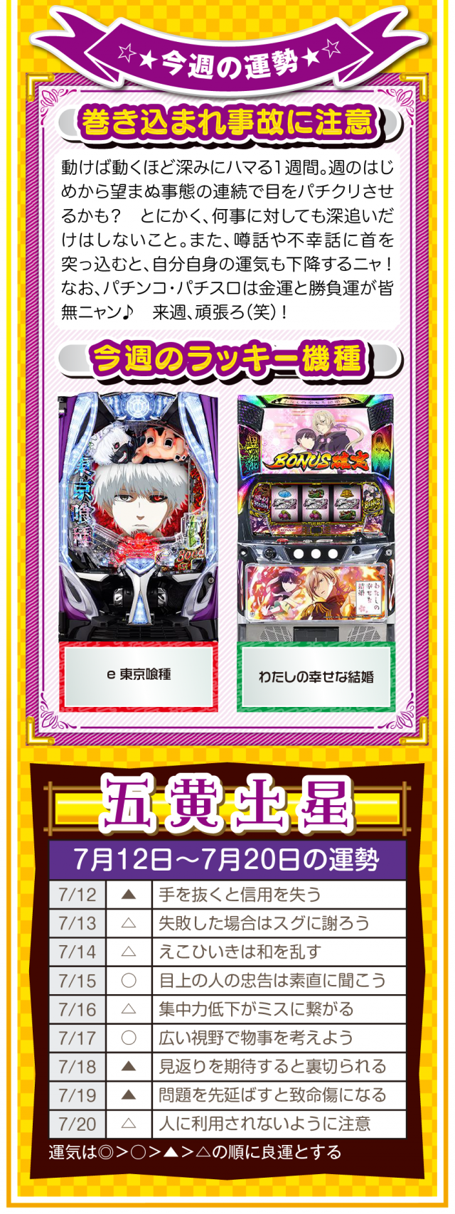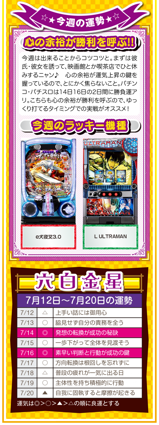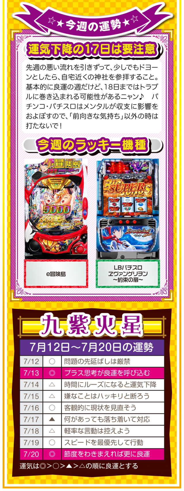 人生に失敗など存在せず、全ては経験なだけ。諦めることから得られる経験は、その後の人生でとても役立つことを覚えておいてほしいニャン♪ というわけで早速、7月14日から20日の1週間を鑑定ニャ(過去の恋愛を美化できないフォー・チュンチュンが、オマケとして12日と13日の運勢も鑑定したニャン♡)!