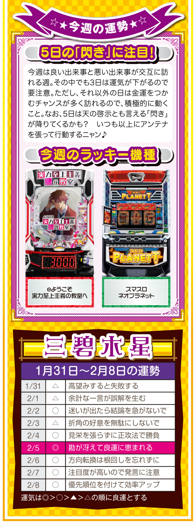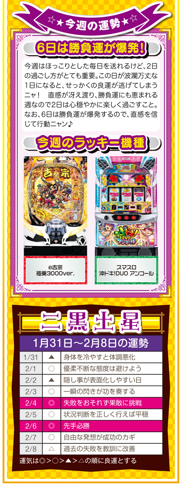そんなわけで今回は、2月2日から8日の1週間を鑑定しつつ、2026年の運気をワンポイントアドバイスするニャ(今年は八方塞がりのフォー・チュンチュンが、オマケとして31日と1日の運勢も鑑定したニャン♡)!