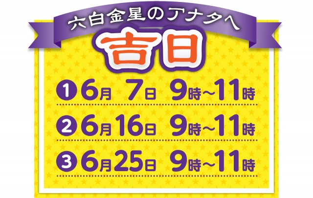 ちなみに、六白金星の人は残念ながら2019年に大吉日がないんだけど、6月に3日間だけ訪れる吉日を教えるから心配することないニャ。