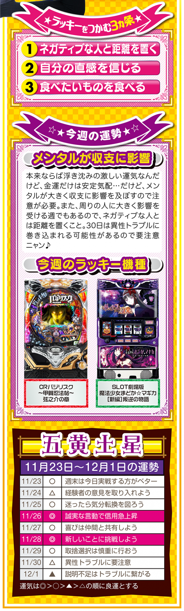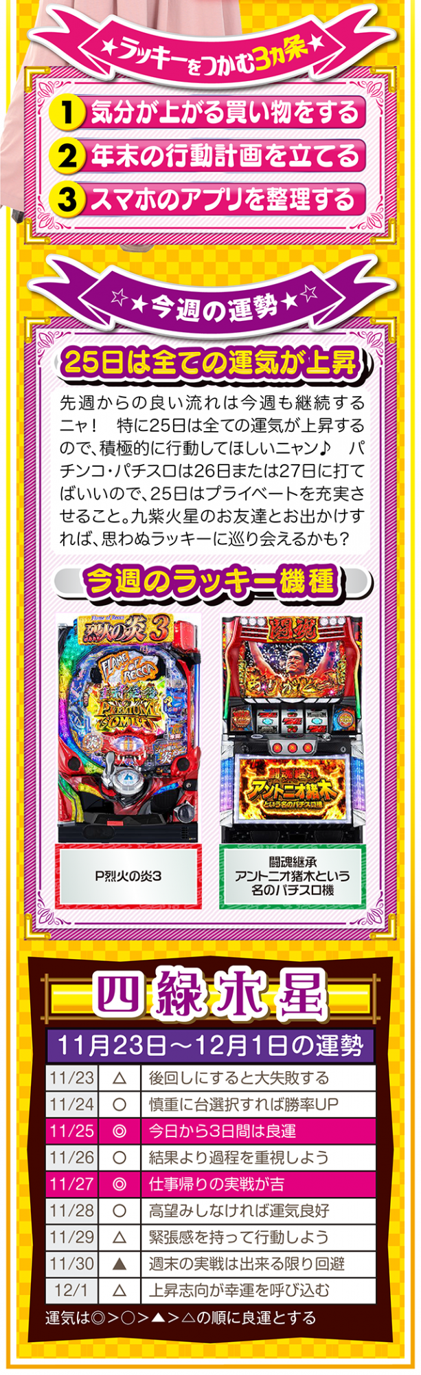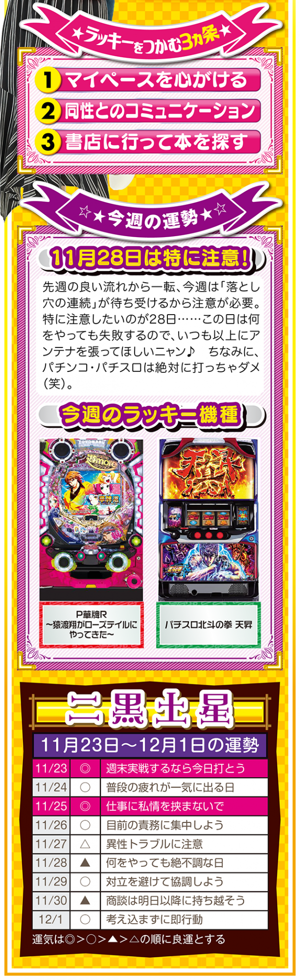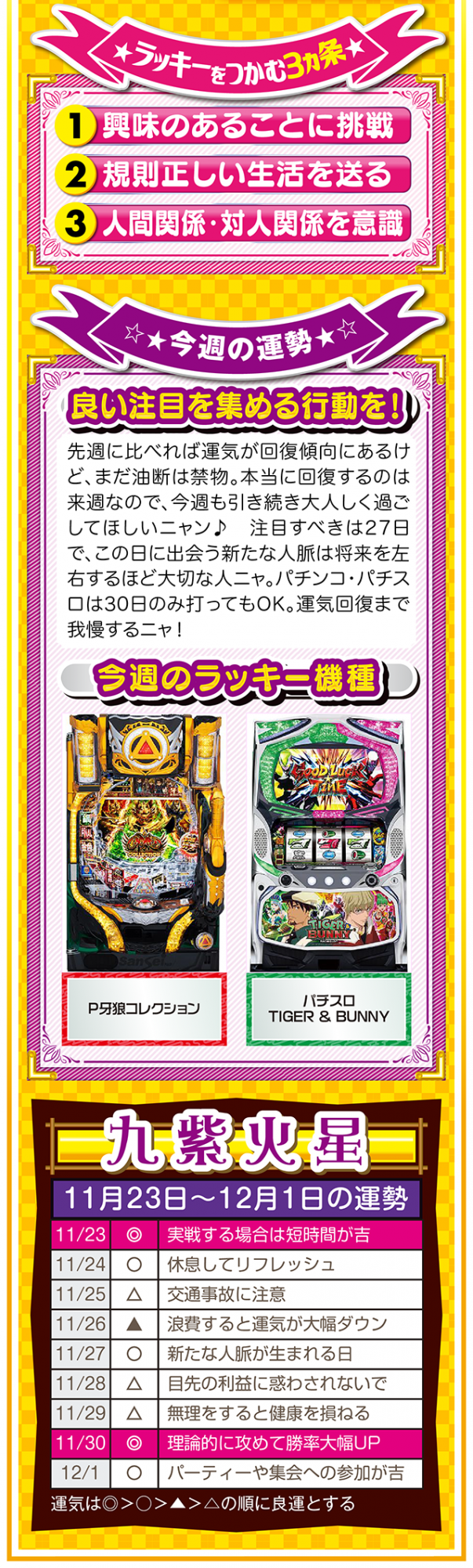 ちなみに、今週から実践すれば運気アップにつながる「ラッキーをつかむ3ヵ条」を分かりやすくまとめているので、これらを実践して幸運を掴んで欲しいニャン!