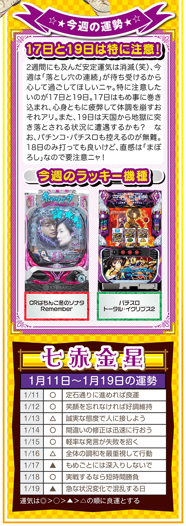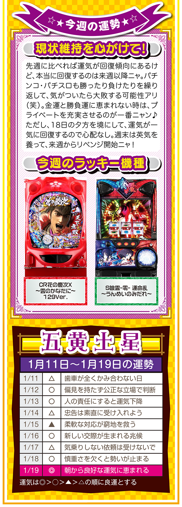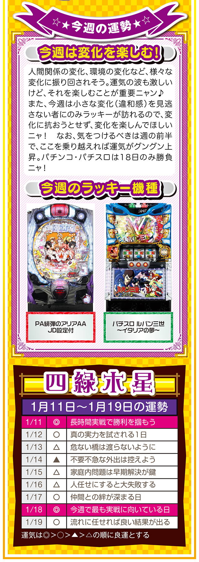 まずは金運を上げる環境を整えるためにも、週に1回、トイレと玄関を綺麗に掃除して厄落としニャ……というわけで早速、1月13日から19日の1週間を鑑定ニャ(初詣のおみくじはズバリ「中吉」で、さらに出会いも「なし」と書かれてて、今年も思わず「こんなの嘘っぱちニャ!」とシャウトしたことを恥じらいつつ、オマケとして11日と12日の運勢も鑑定したニャン♡)!