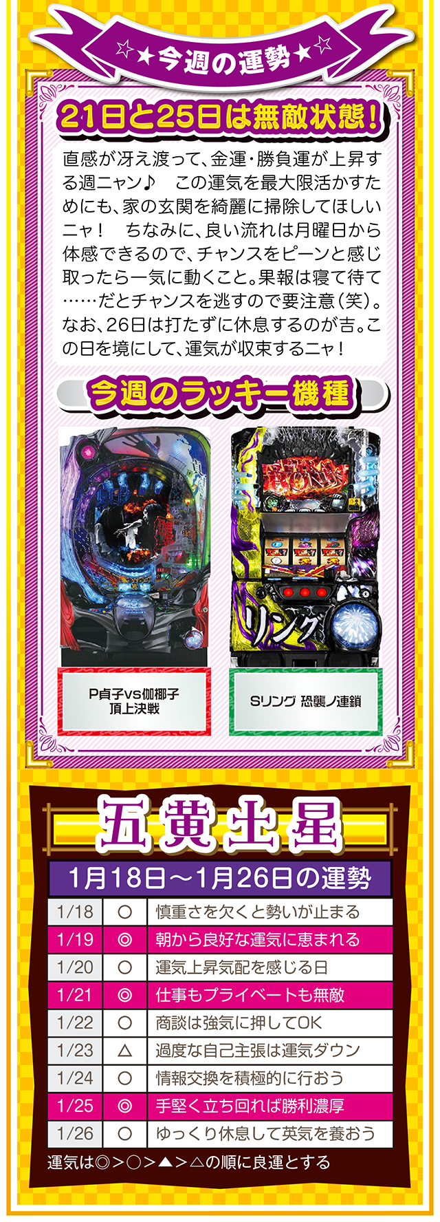 東南から訪れるラッキーは人脈を広げる力を与え、北西から訪れるラッキーは財産やお金を授け、さらに仕事と地位を上げる手助けをしてくれるニャ!