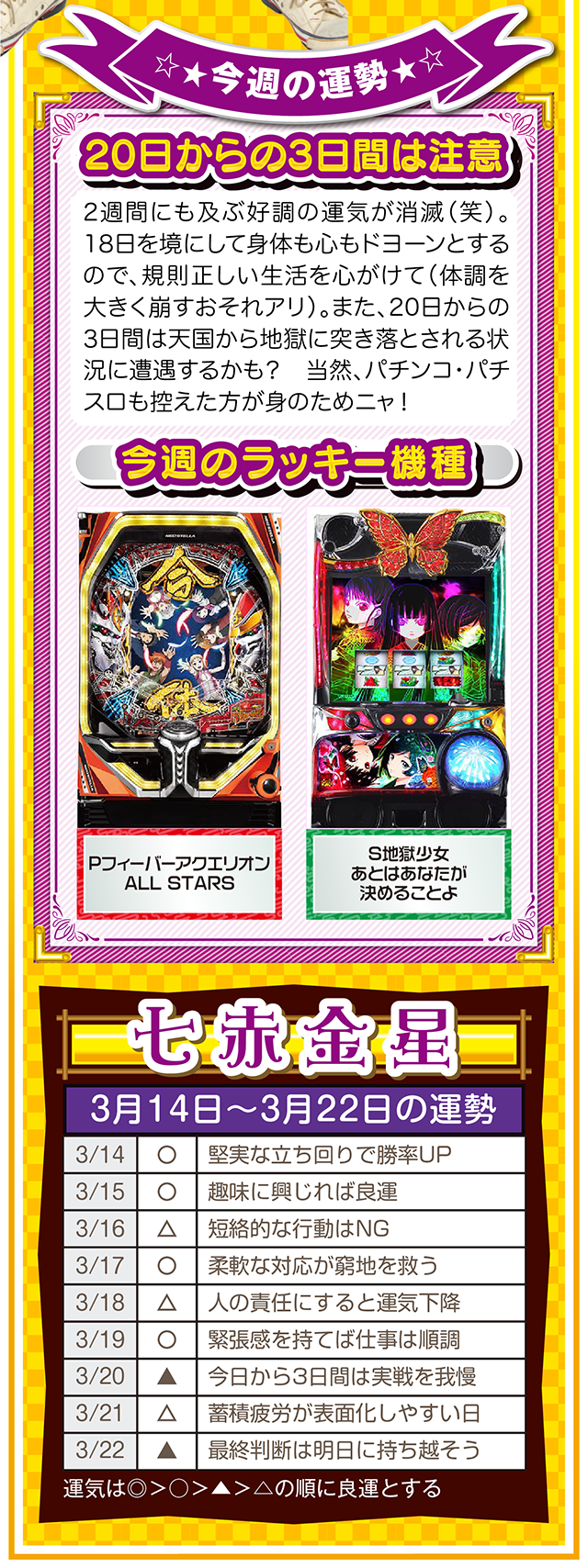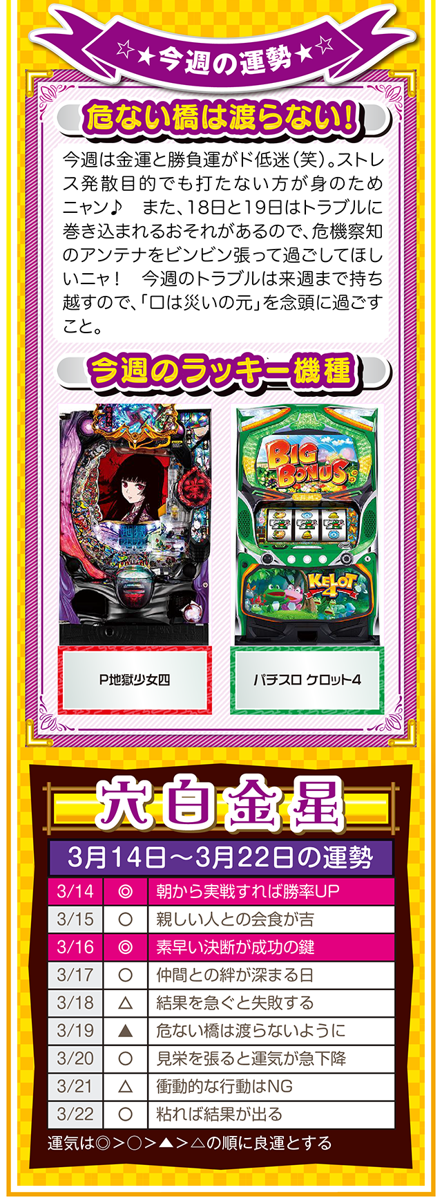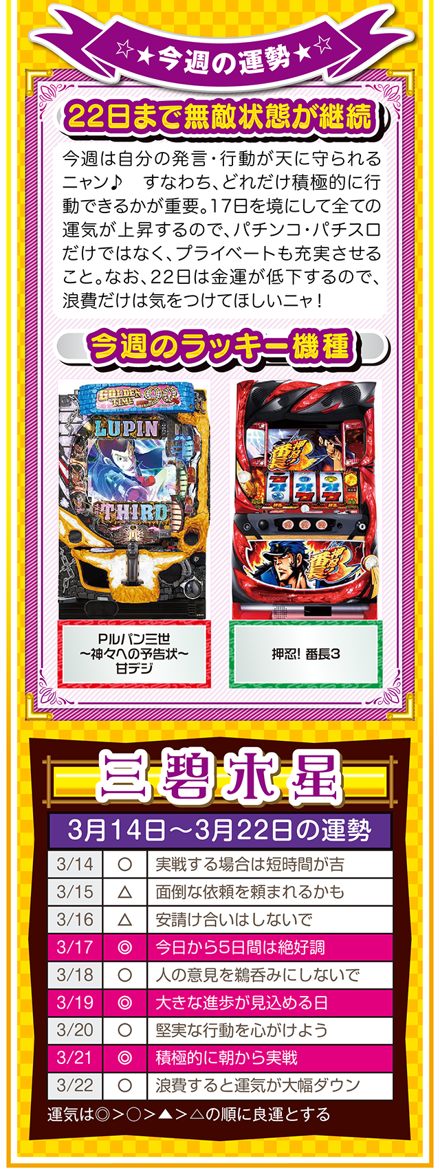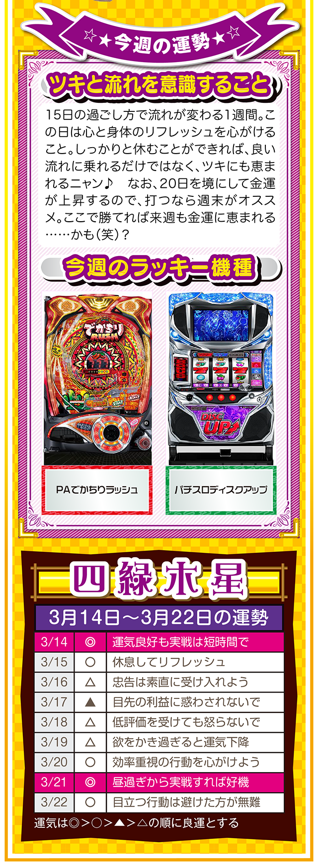 フォーチュン・チュンは暗いニュースに振り回されたくないから、ネットとニュースを見ない日々継続中ニャン(笑)……というわけで早速、3月16日から22日の1週間を鑑定ニャ(「ニュースには振り回されないのに男性に振り回されるのはなぜ?」と自問自答を繰り返しつつ、オマケとして14日と15日の運勢も鑑定したニャ♡)!
