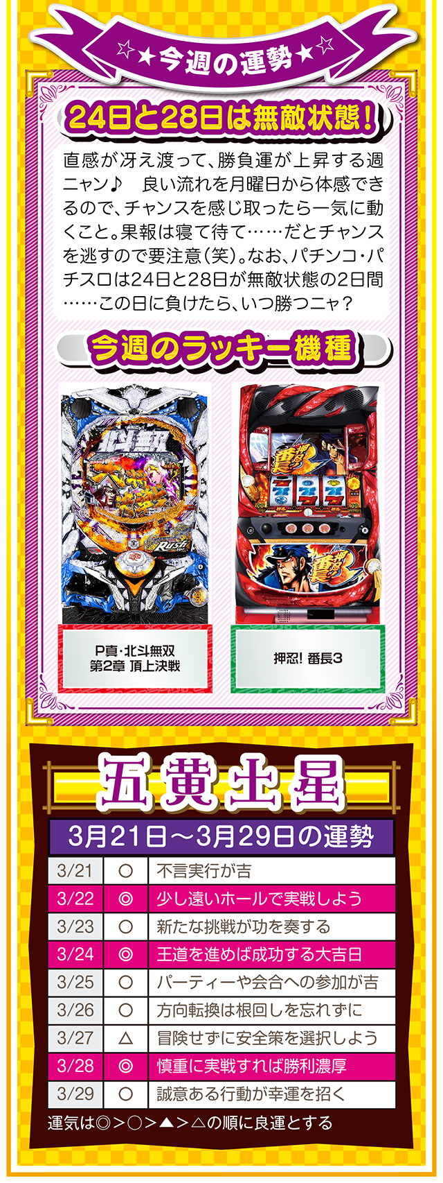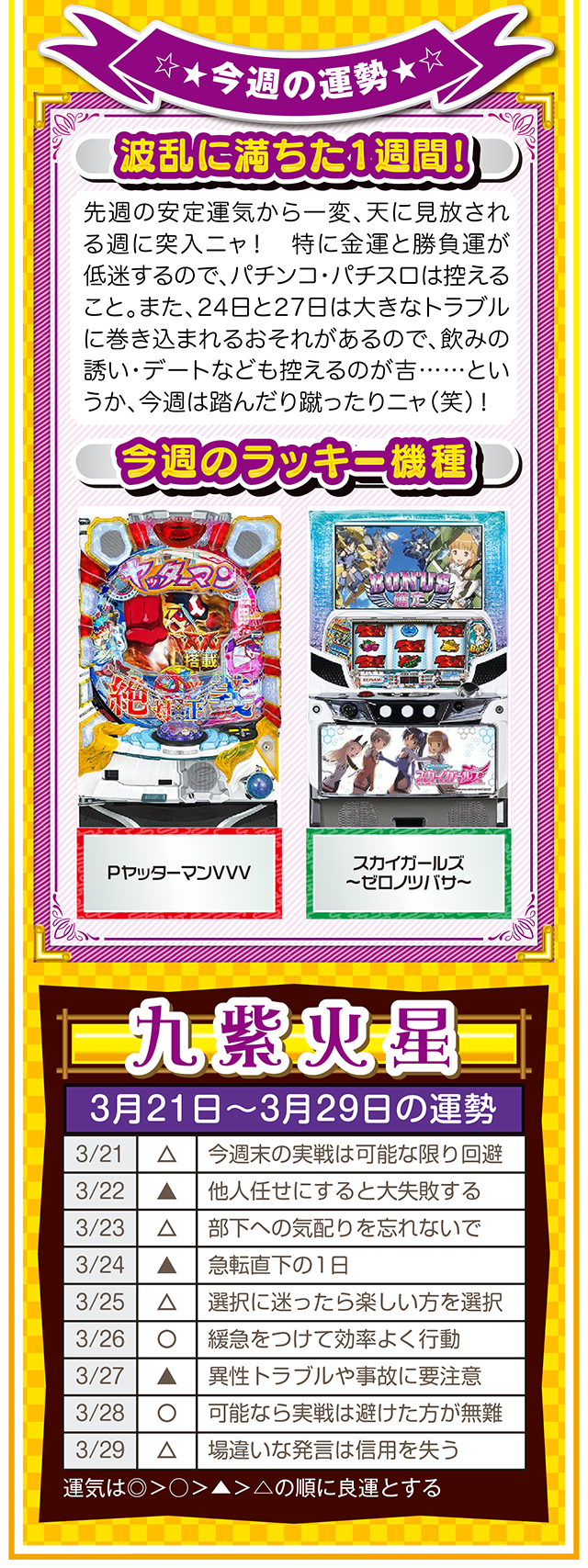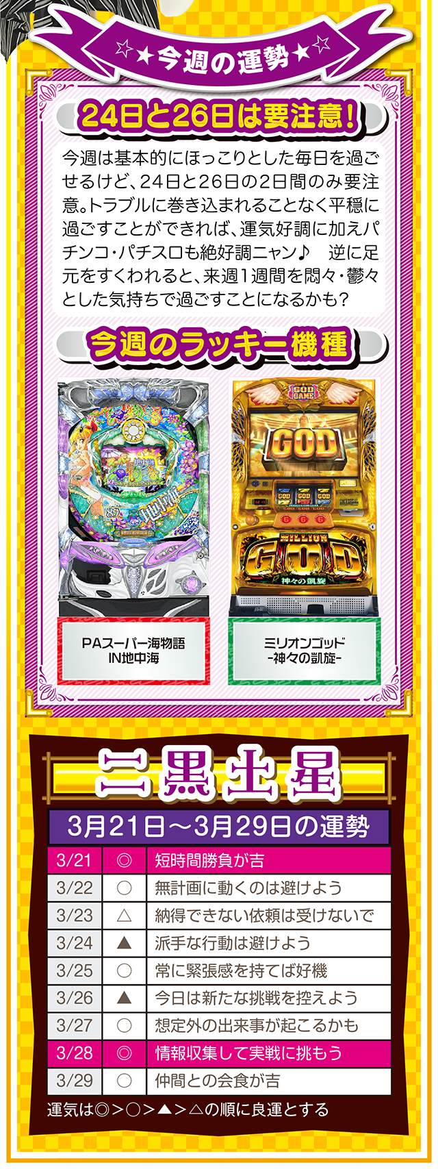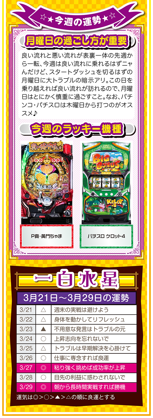 ちなみに、中高年男性特有の「お腹周りの脂肪」に関しては(ドラムロール♪)……九星気学の書籍に1ミリも書かれていないので早速、3月23日から29日の1週間を鑑定ニャ(「風水の源流が九星気学なのに、なぜ風水ばかりがフィーチャーされるニャ?」と若干の嫉妬心を抱きつつ、オマケとして21日と22日の運勢も鑑定したニャン♡)!