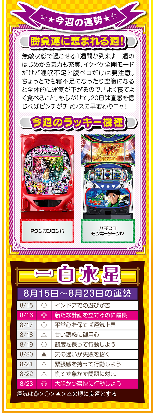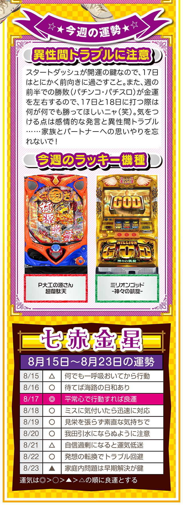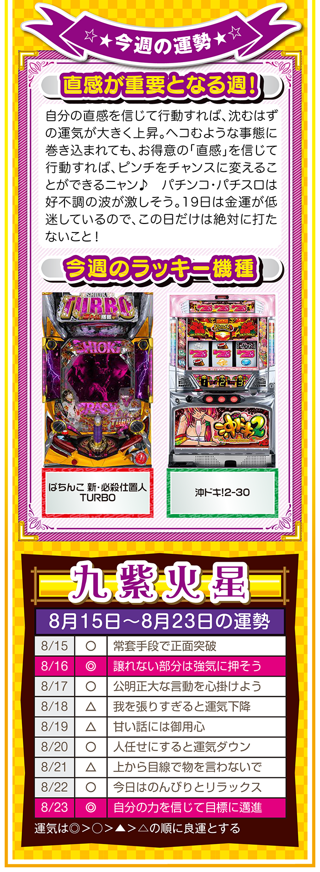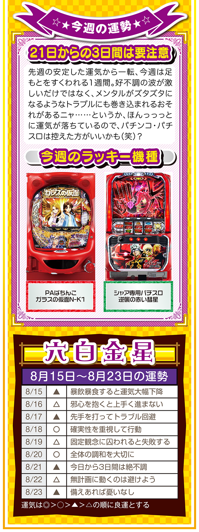 これがツキと流れをつかむ奥義であり、幸せに過ごすための第一歩ニャン……というわけで早速、8月17日から23日の1週間を鑑定ニャ(「男って自分勝手な人間ばかりじゃね?」と過去の男性遍歴を振り返りつつ、今週もオマケとして15日と16日の運勢も鑑定したニャン♡)!