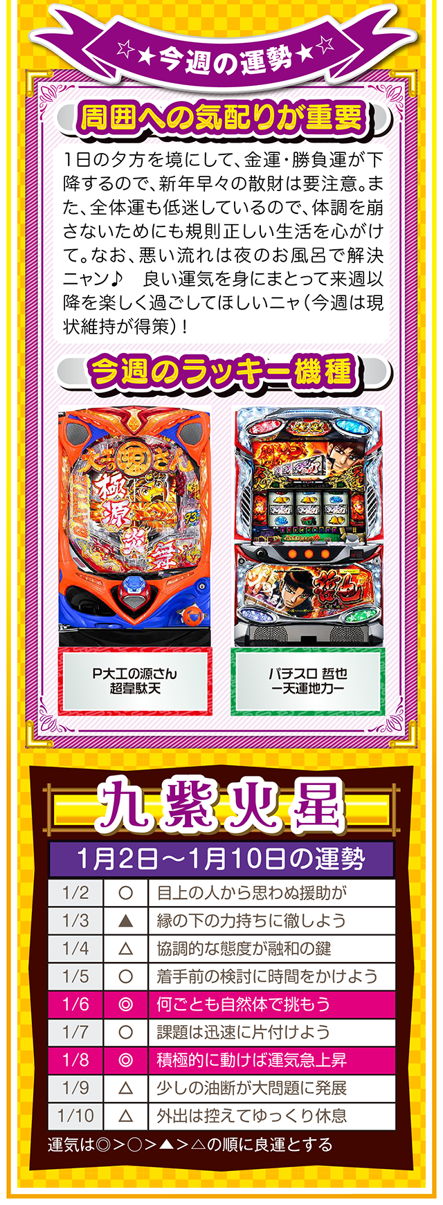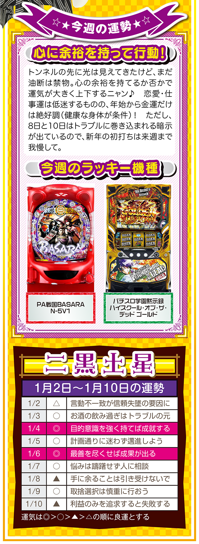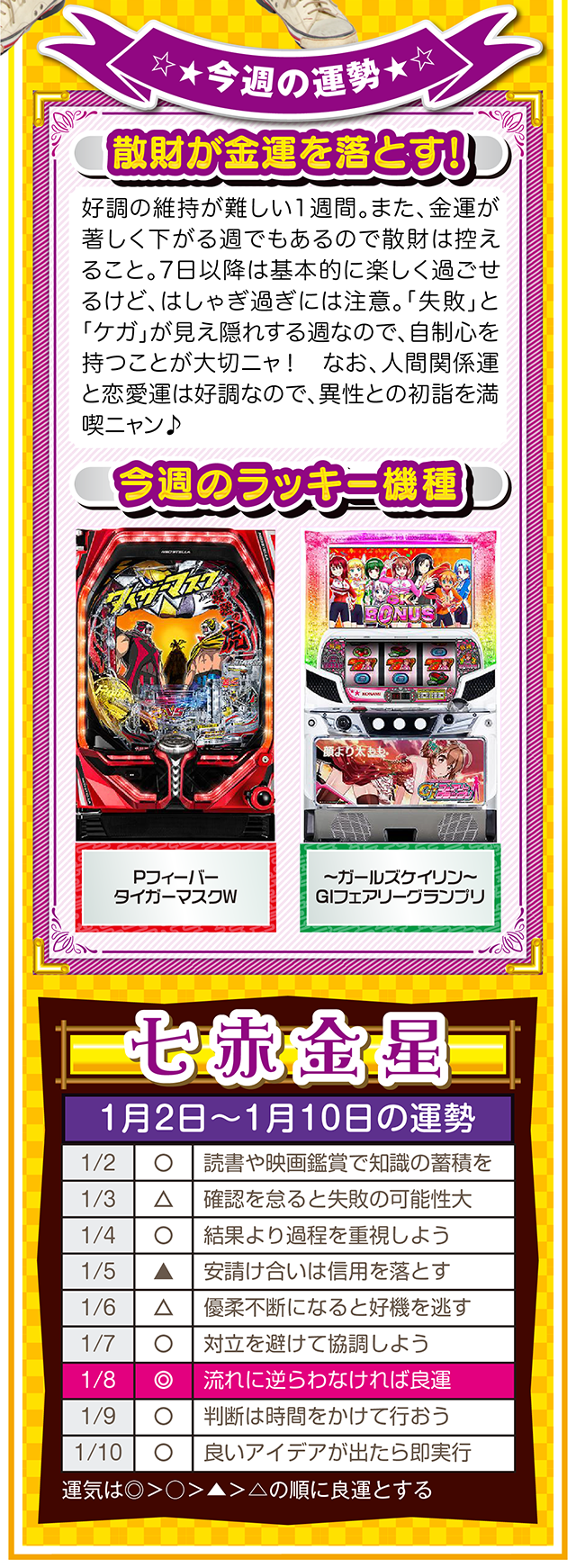 九星気学は動の運命学。令和3年は行動力と直感が「天に守られる秘訣」でもあるので、動きに動きまくって良い流れをつかみ取ってほしいニャン……というわけで早速、1月4日から1月10日の1週間を鑑定ニャ(1月中旬までのスケジュールが真っ白のフォー・チュンチュンが、オマケとして1月2日と3日の運勢も鑑定したニャン♡)!