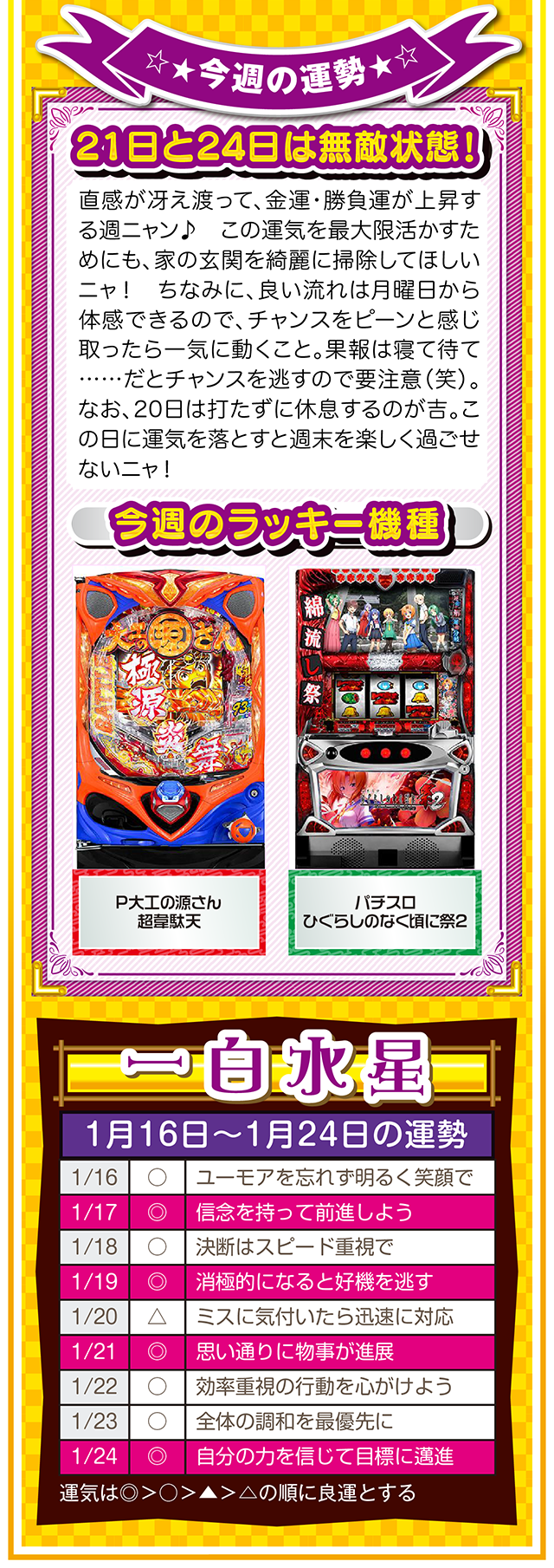 このラッキーは必ず自宅に訪れるので、運を招き入れるための準備(玄関を綺麗にする、トイレをマメに掃除して造花を飾るなど)をしておくこと。