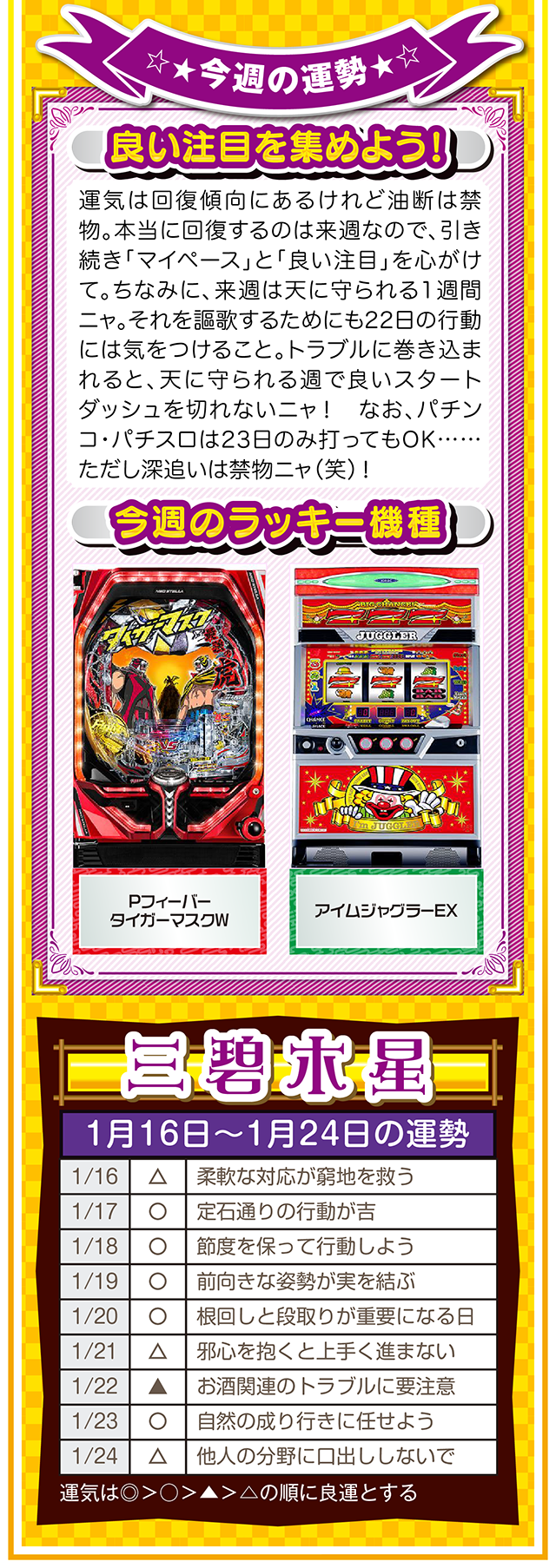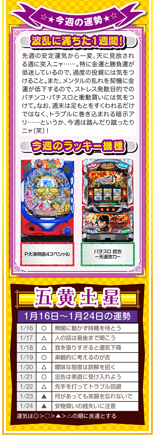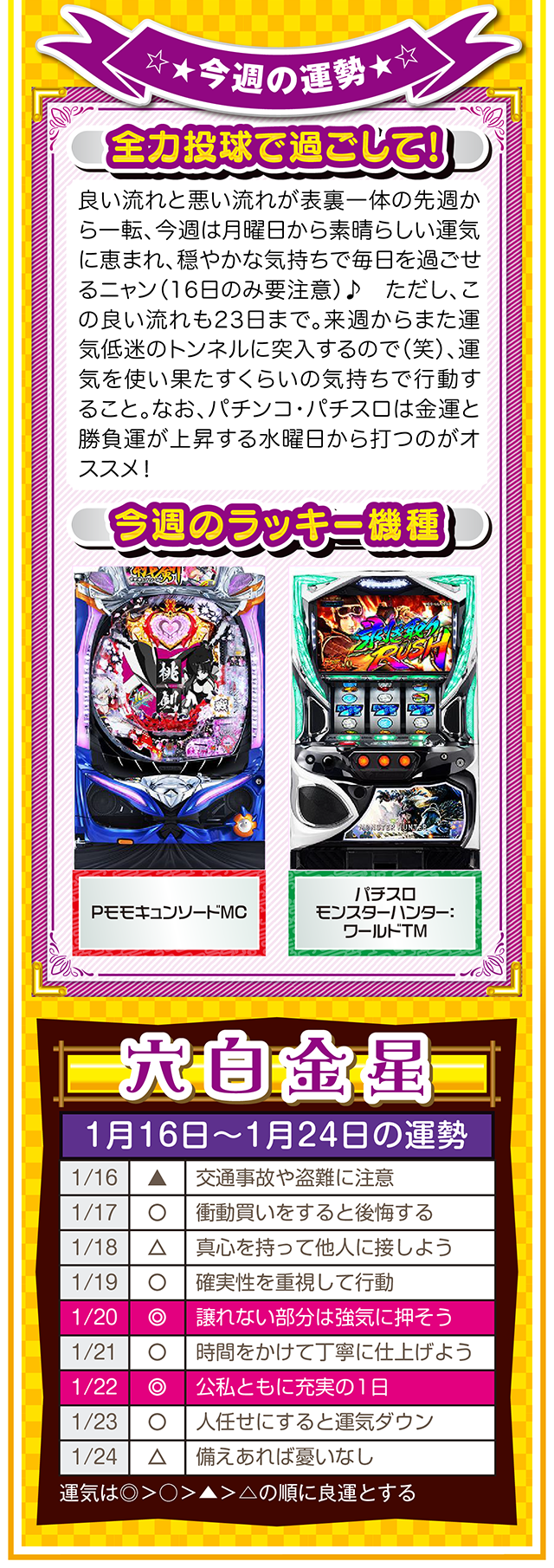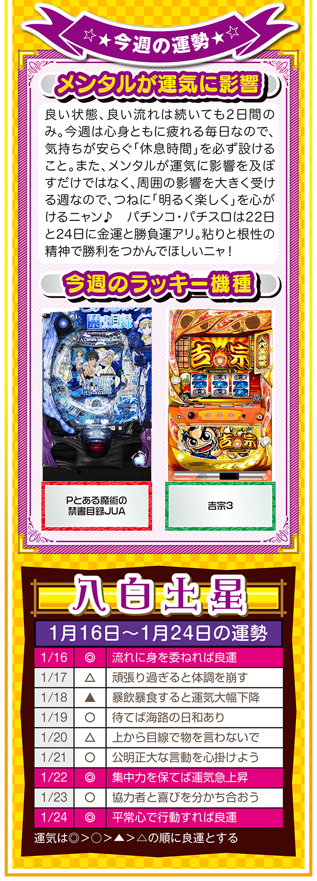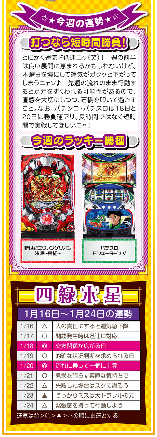 2021年を楽しく有意義に過ごすためにも、この東北と南西の方角は必ず意識してほしいニャン……というわけで早速、1月18日から24日の1週間を鑑定ニャ(東北の方角に観葉植物、南西の方角に牧場の写真を貼り付けたフォー・チュンチュンが、オマケとして16日と17日の運勢も鑑定したニャン♡)!