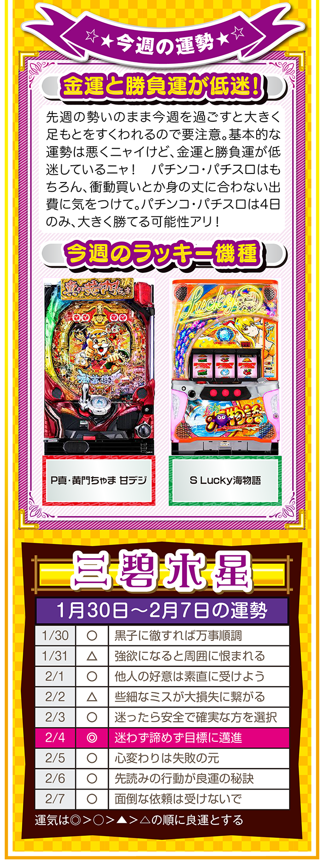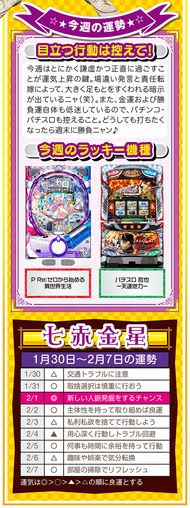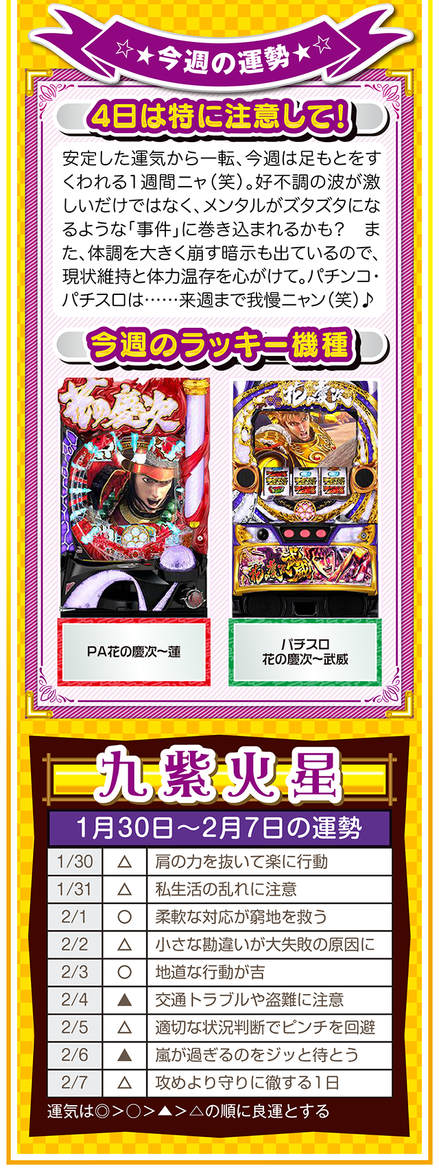 なお、今回はさらにオマケとして、2月4日からはじまる新たな運勢を鑑定したニャ(九星気学では2月4日がお正月)!