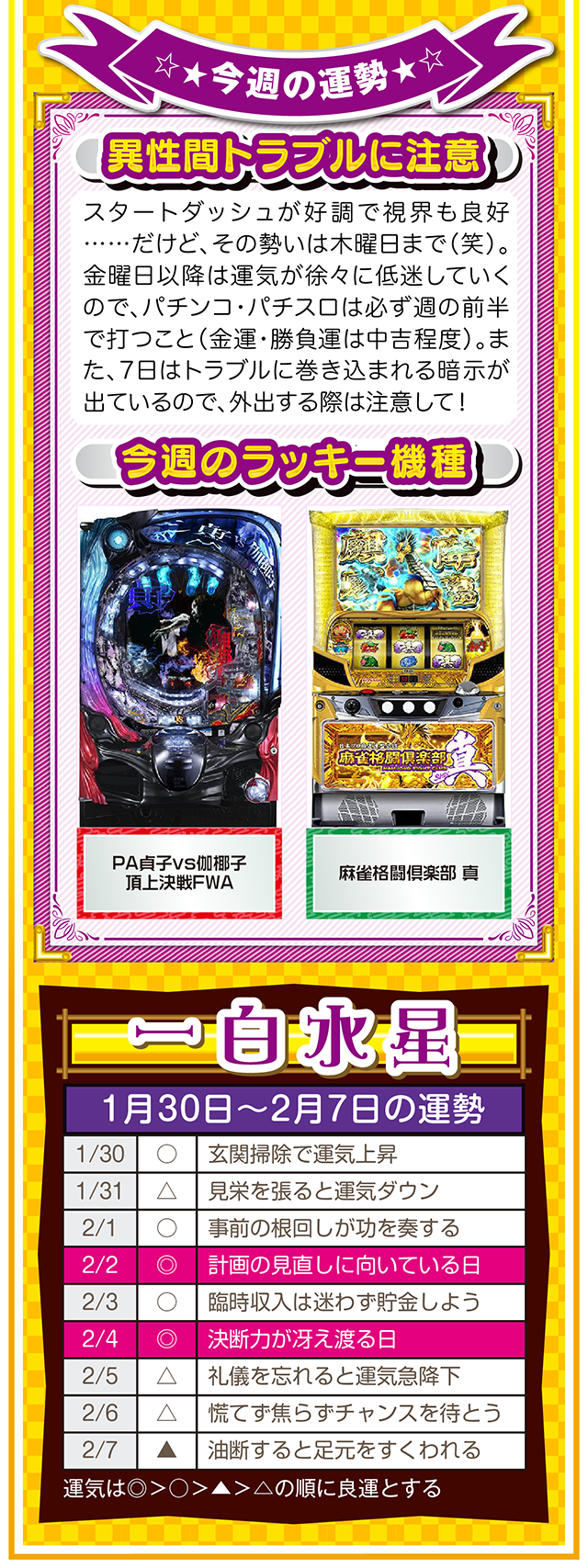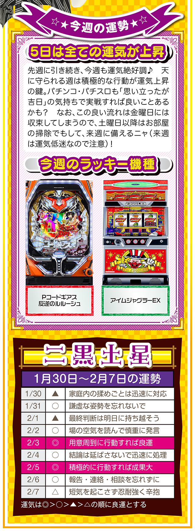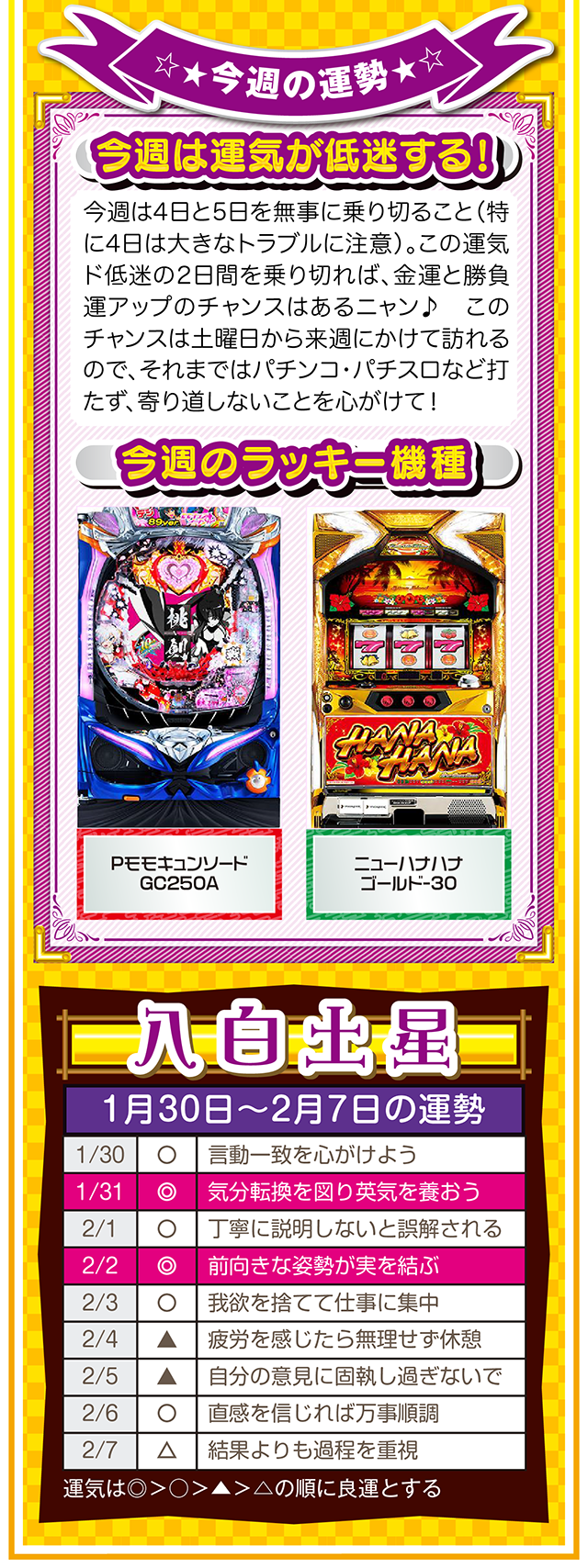 なお、今回はさらにオマケとして、2月4日からはじまる新たな運勢を鑑定したニャ(九星気学では2月4日がお正月)!