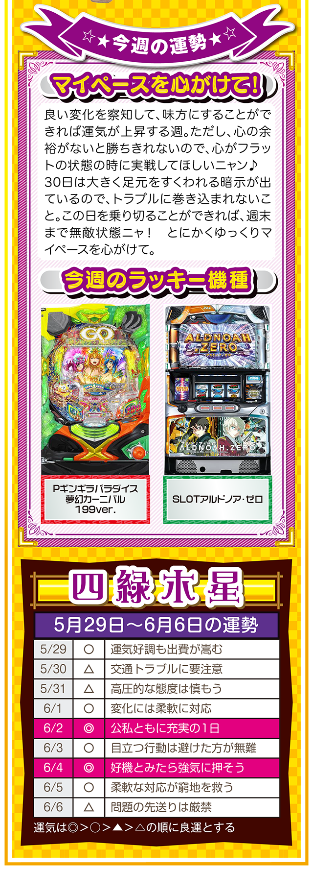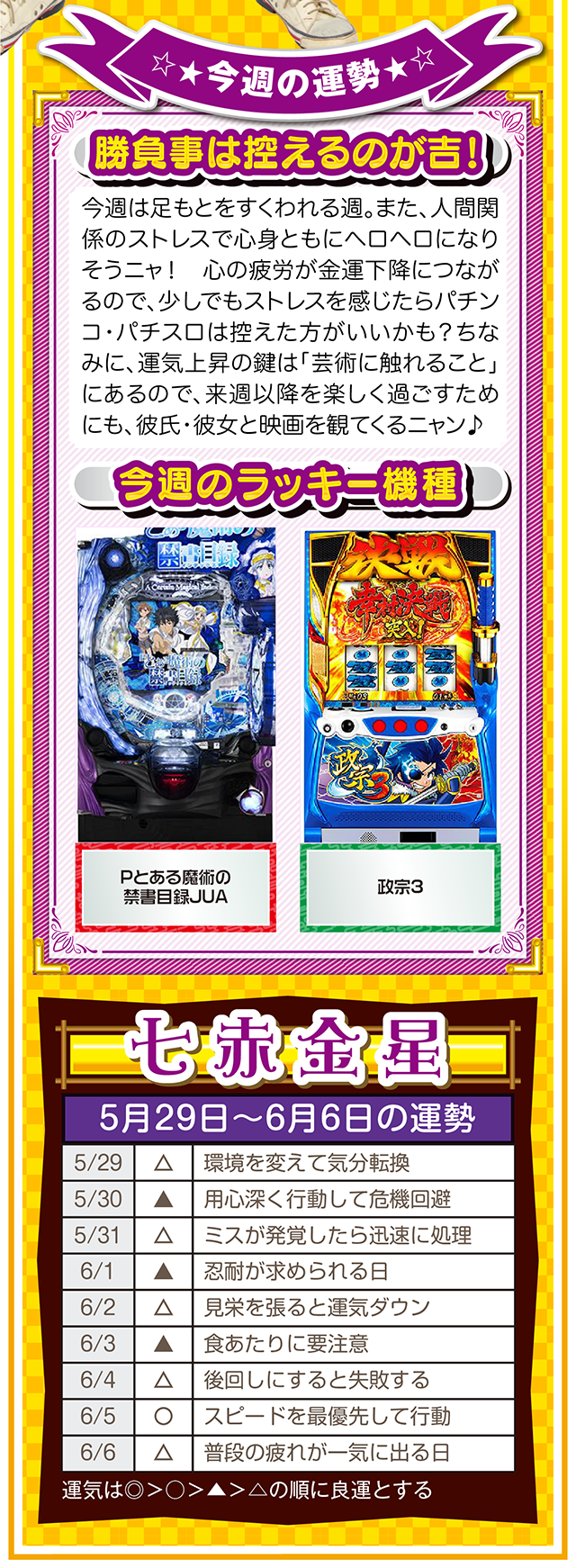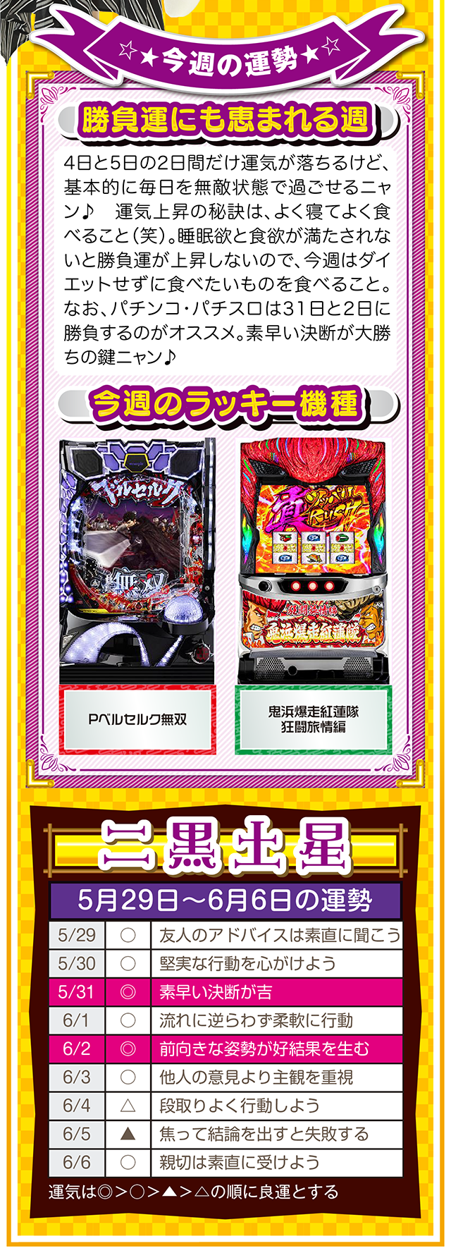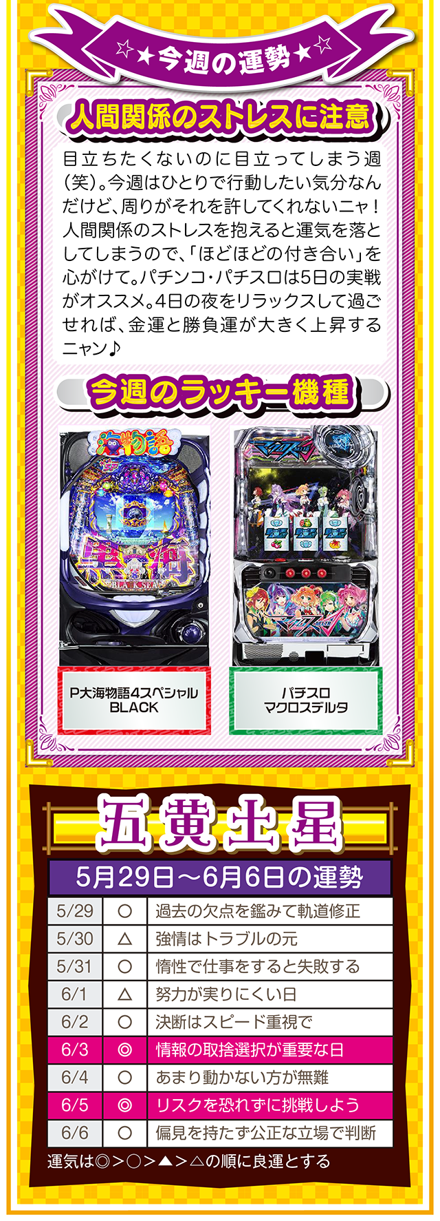 自分の星の性質を理解して、陰陽五行説の相性をベースに「恋愛」、「結婚」、「仕事」、「お金」について考えれば、人間関係のストレスが軽減されるニャン♪ というわけで早速、5月31日から6月6日の1週間を鑑定ニャ(将来の旦那さんは金星人と決めているフォー・チュンチュンが、オマケとして5月29日と30日の運勢も鑑定したニャン♡)!