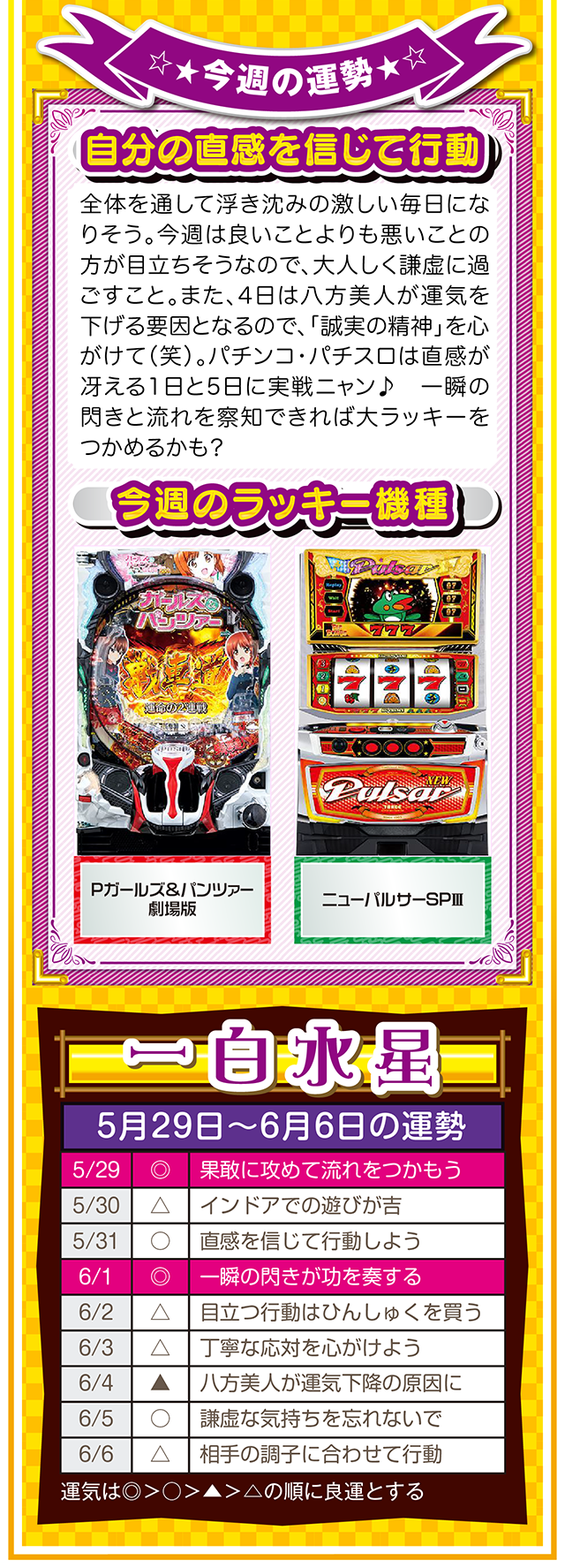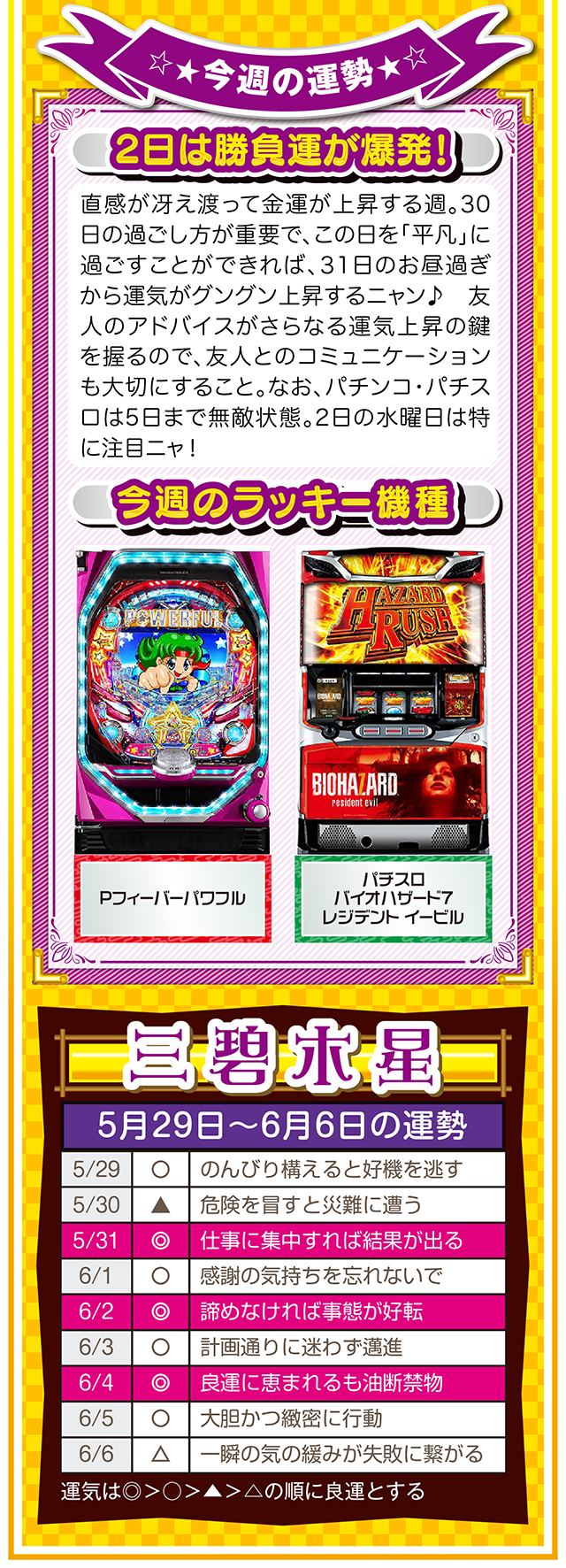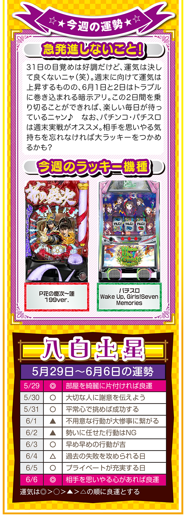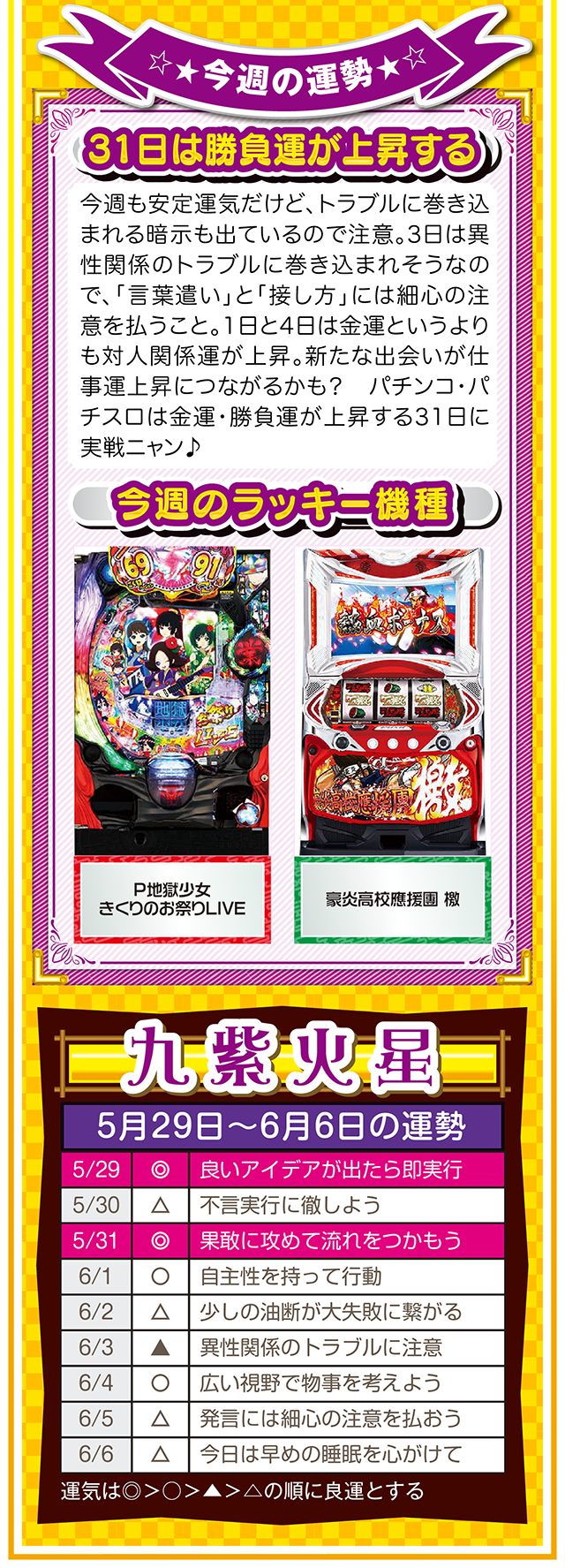 自分の星の性質を理解して、陰陽五行説の相性をベースに「恋愛」、「結婚」、「仕事」、「お金」について考えれば、人間関係のストレスが軽減されるニャン♪ というわけで早速、5月31日から6月6日の1週間を鑑定ニャ(将来の旦那さんは金星人と決めているフォー・チュンチュンが、オマケとして5月29日と30日の運勢も鑑定したニャン♡)!