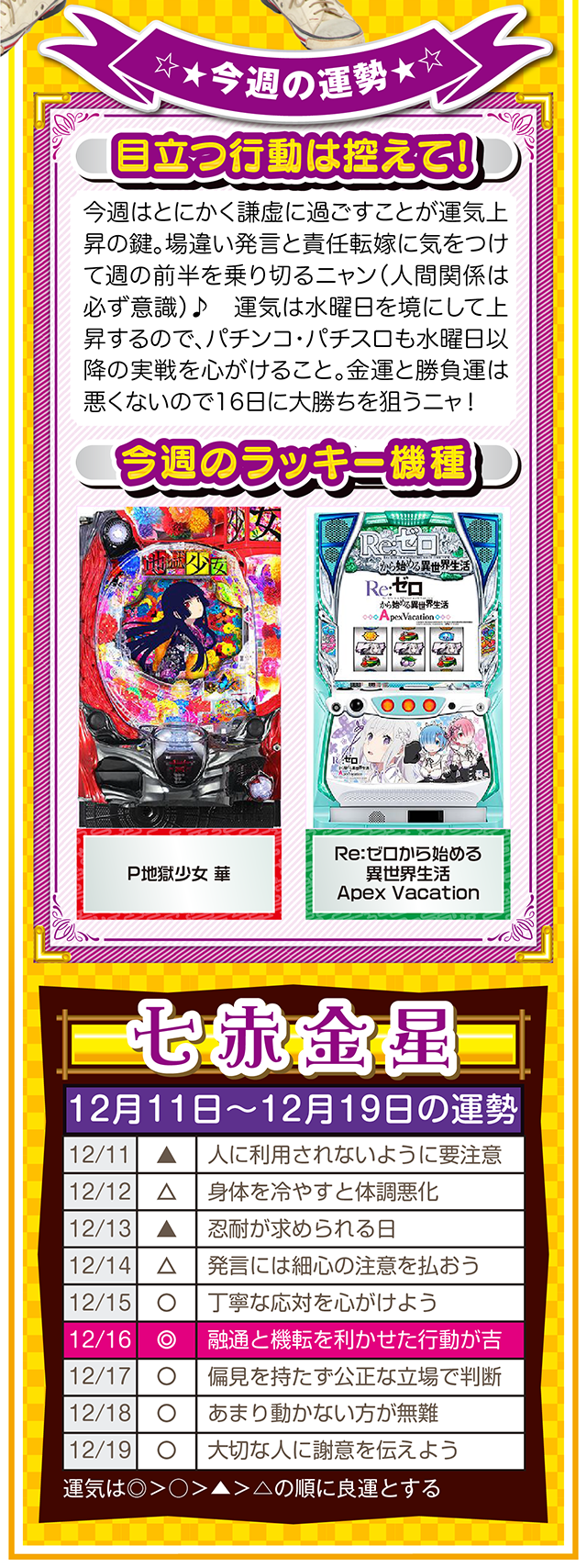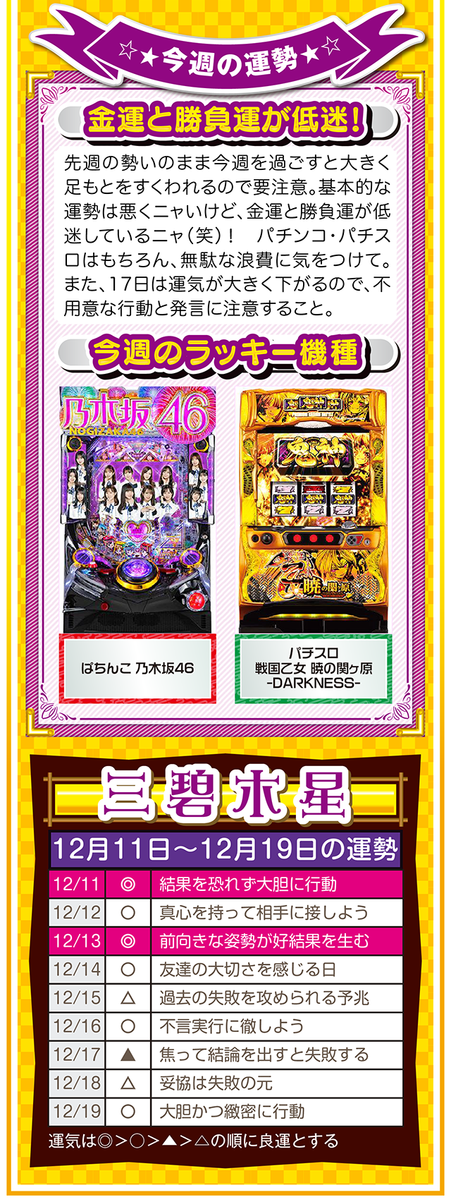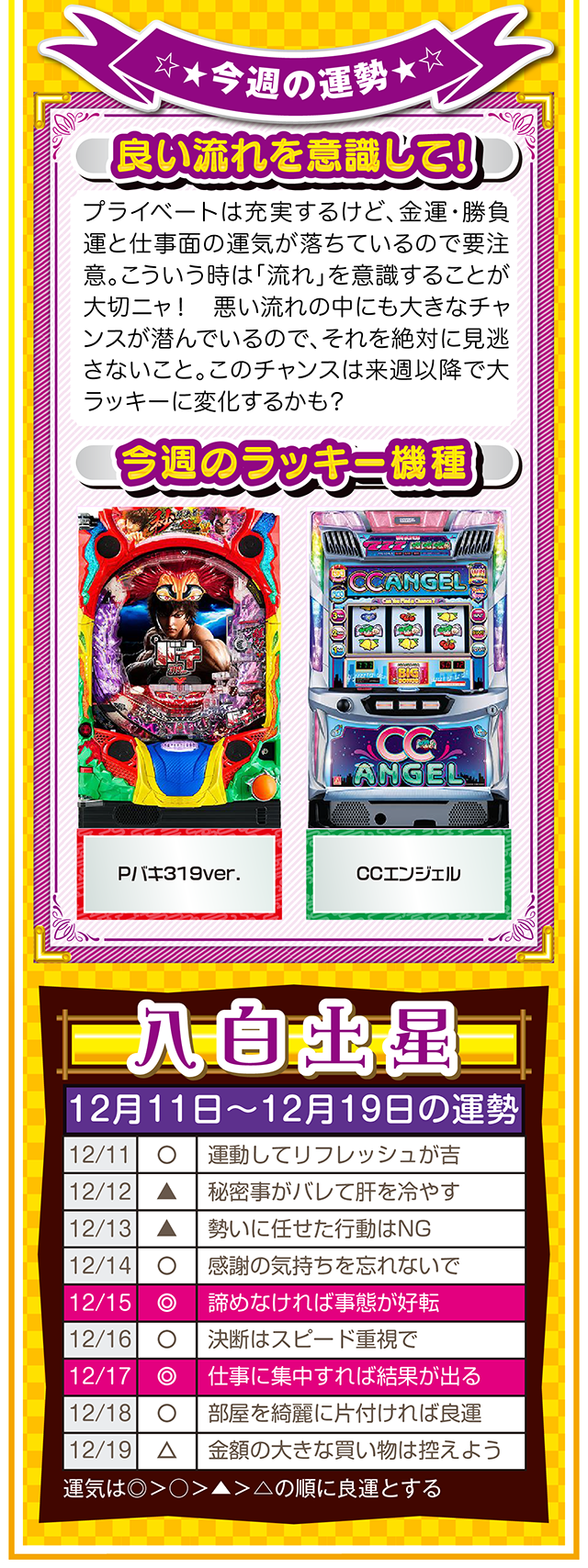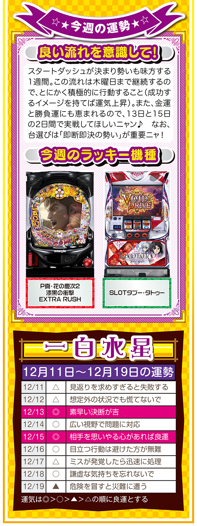 運とかツキはポジティブな人が大好き。自分を肯定しつつ反省して、良い流れを呼び込んでほしいニャン♪ というわけで早速、12月13日から12月19日の1週間を鑑定ニャ(付き合う男に自己愛が激しすぎると必ず言われるフォー・チュンチュンが、オマケとして12月11日と12日の運勢も鑑定したニャン♡)!