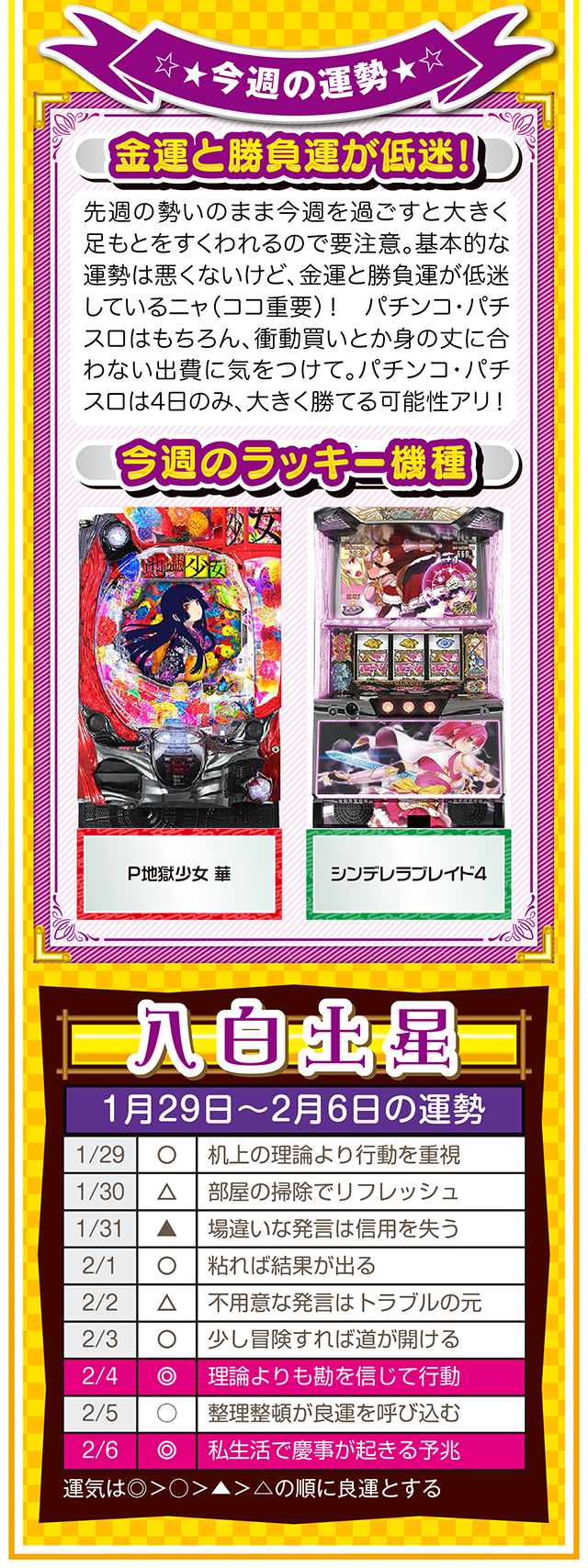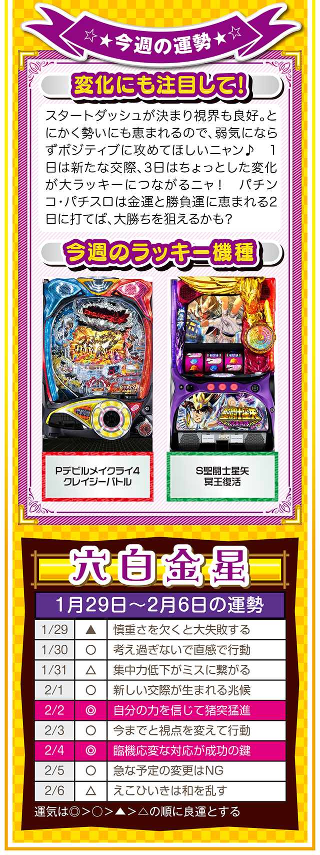 なお、今回はさらにオマケとして、2月4日からはじまる新たな運勢を鑑定したニャ(九星気学では2月4日がお正月)!