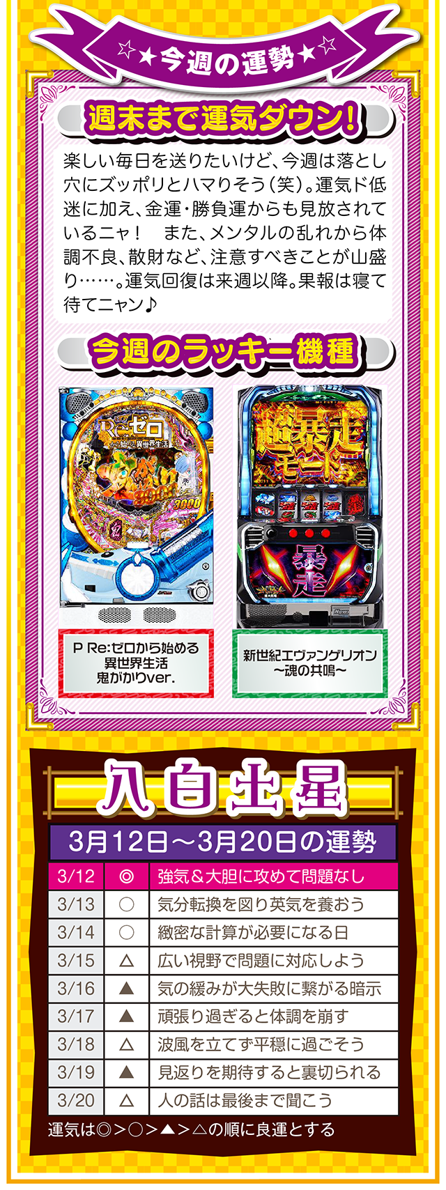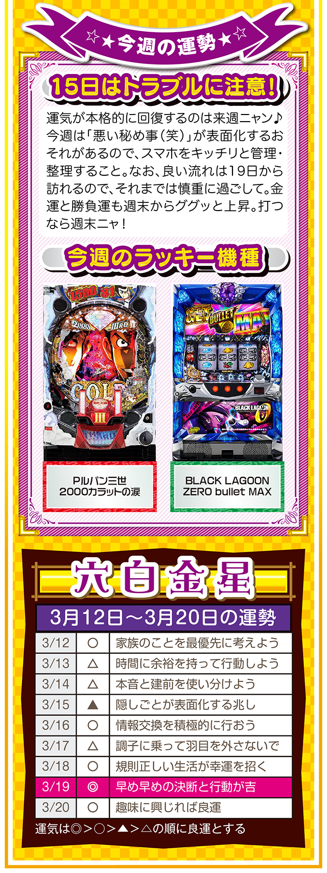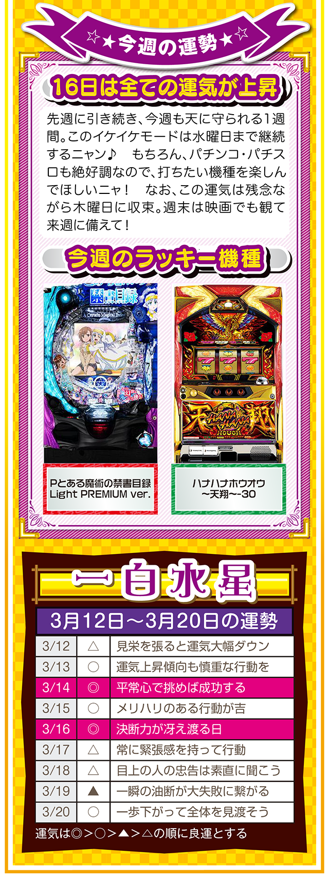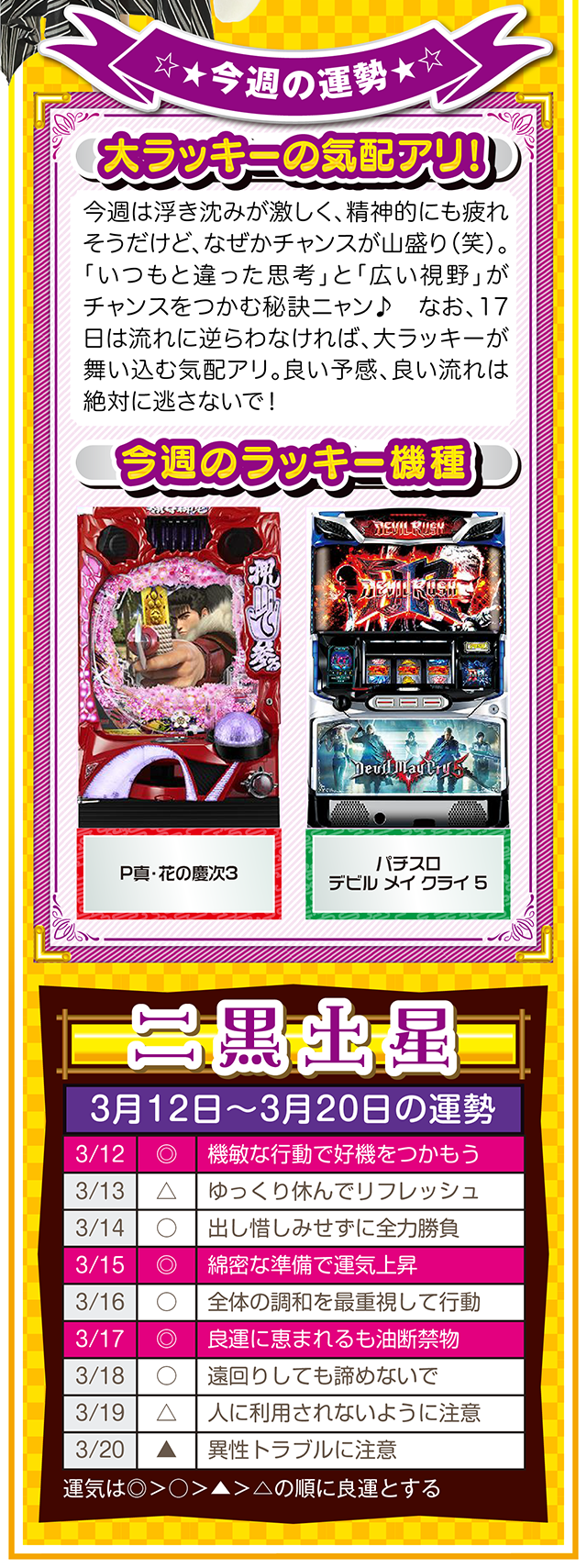 相手の魅力を見抜ける人は、自分自身の魅力も磨かれる。観察力ではなく洞察力を意識すれば、人生をもっと華やかに、そして楽しく過ごせるニャン♪ というわけで早速、3月14日から20日の1週間を鑑定ニャ(異性に対しては観察力全開のフォー・チュンチュンが、オマケとして3月12日と13日の運勢も鑑定したニャン♡)!