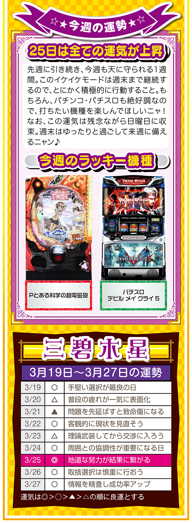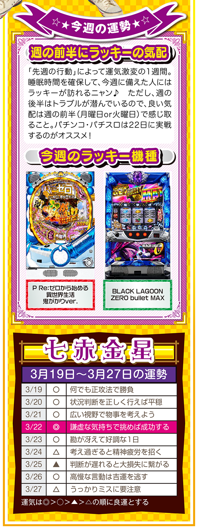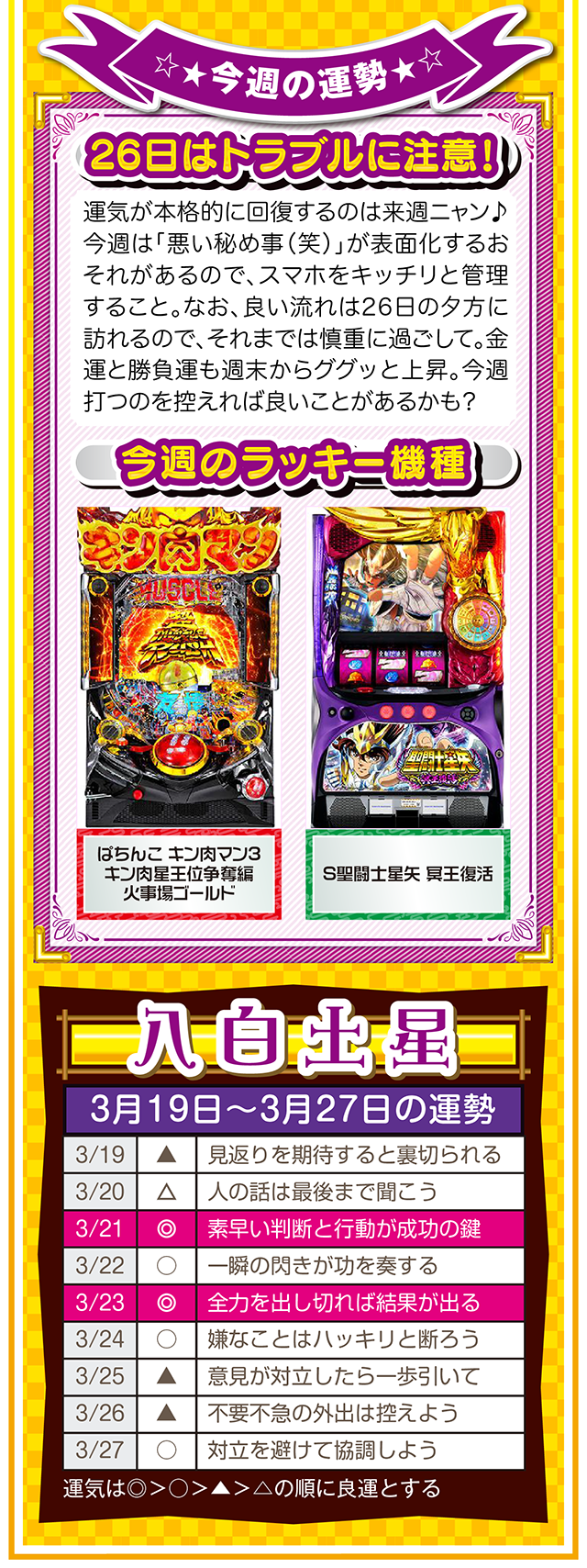 もちろん、怒りや悲しみにも大小があるけど、「感情の揺らぎ」に注目すれば、その人の人間性の本質が見えてくる。何で怒ったのか、何で悲しんだのかを分析することが、円滑な恋愛関係、良好な人間関係に繋がることを覚えておいてほしいニャン♪ というわけで早速、3月21日から27日の1週間を鑑定ニャ(白馬に乗った王子様が現れないため、日々悲哀全開のフォー・チュンチュンが、オマケとして3月19日と20日の運勢も鑑定したニャ♡)!