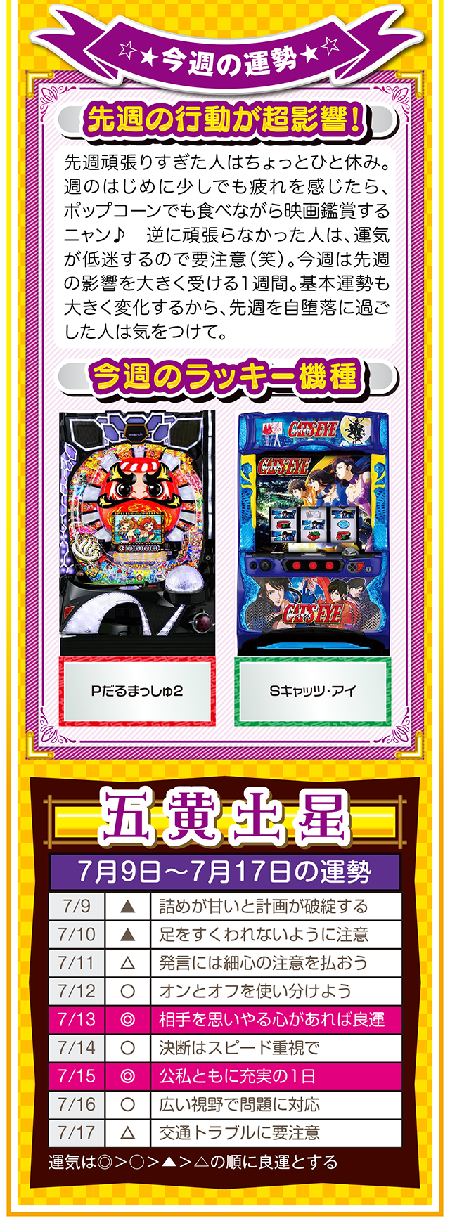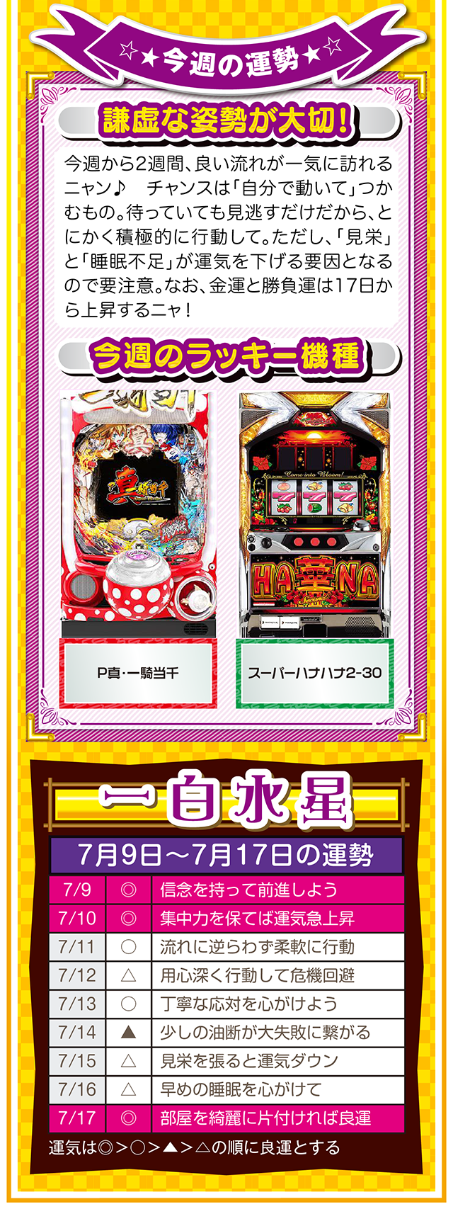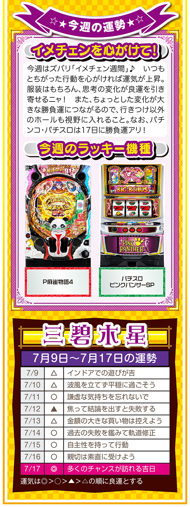 ラッキーパンチで成功する人はひと握りニャン(笑)? だから、成功者を羨む前に、もっと成功者のことを想像してほしいニャ! というわけで早速、7月11日から7月17日の1週間を鑑定ニャン(鬼のような時間を婚活に捧げているのに全く結果が出ないフォー・チュンチュンが、オマケとして9日と10日の運勢も鑑定したニャン♡)♪