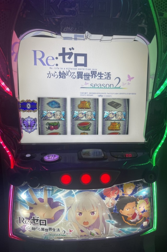 私あさくら、データを取るお仕事が本当に大好きなんです。よく編集部の方とメーカーさんへ赴き、導入前の新機種を実戦しています。今月は2機種打ちました! まずは『スロット Re:ゼロから始める異世界生活 season2』です。