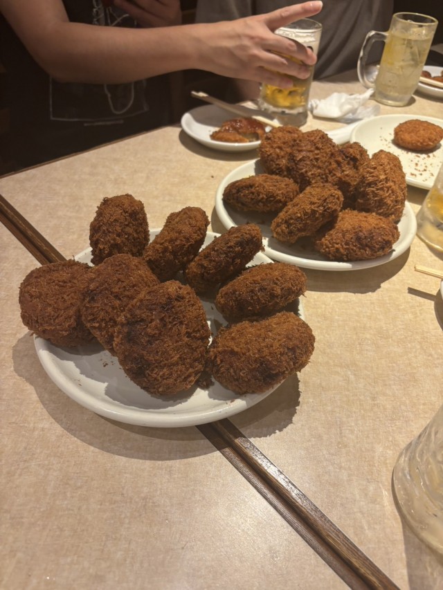 続いてこの茶色い物体。これはコロッケとミンチカツです。誰と食べていたかといいますと...
