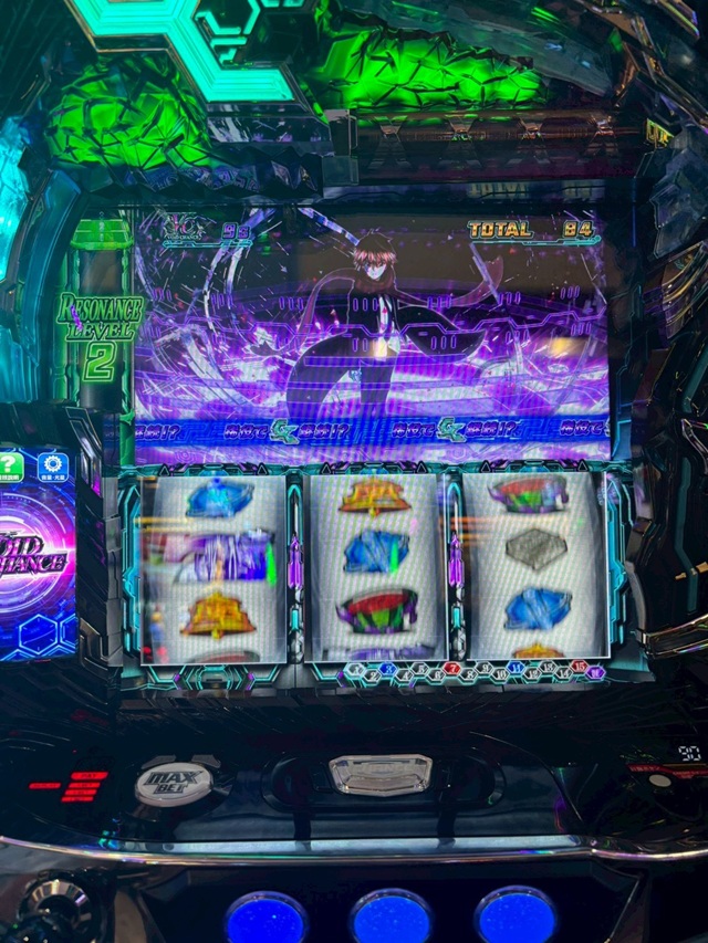 まずは分かりやすいものから。紫フィールドはレア役対応なので、レバーオンで紫に変化した時点で0確でございます。