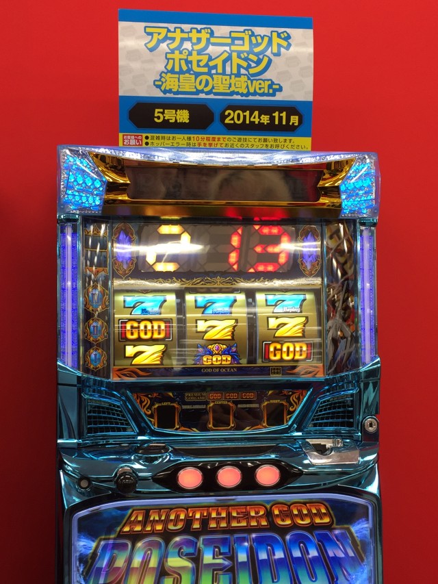 ゴッドのポセイドンverも展示してありましたね、これら2機種を打てる列がありましたのでそちらで並んでいざ実践