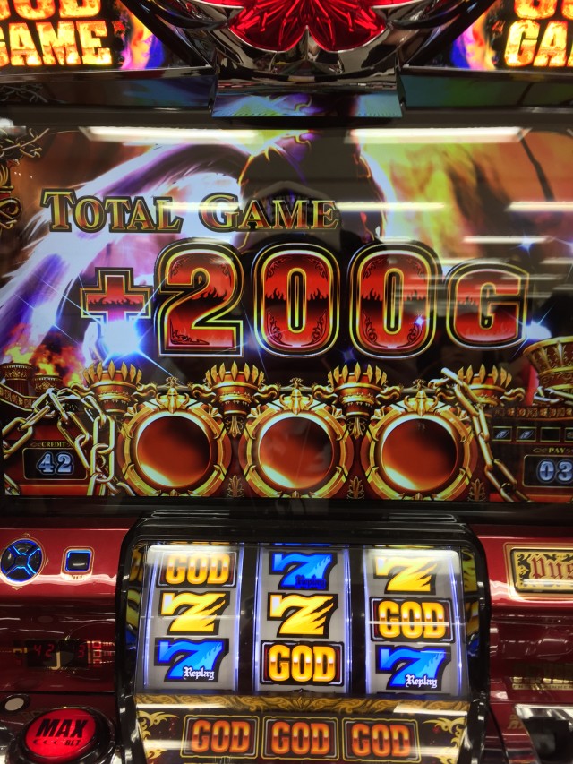 GOD揃いが7枚役、ということは普段の斜めや中段も7枚で、GG中のベルは15枚(確認済み)ということは・・・単純に順増が3枚超えてくるんじゃないかとwww