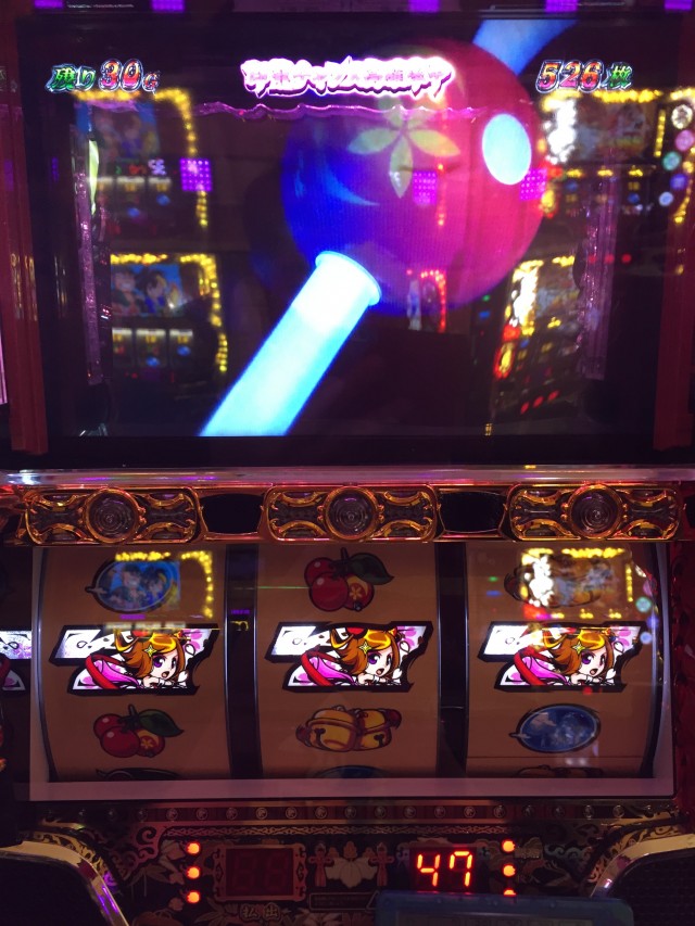 ATが終わりそうなので箱にメダルを詰めながら打っていると…何か液晶がピーとかいって壊れました(;゜ω゜)ぇ