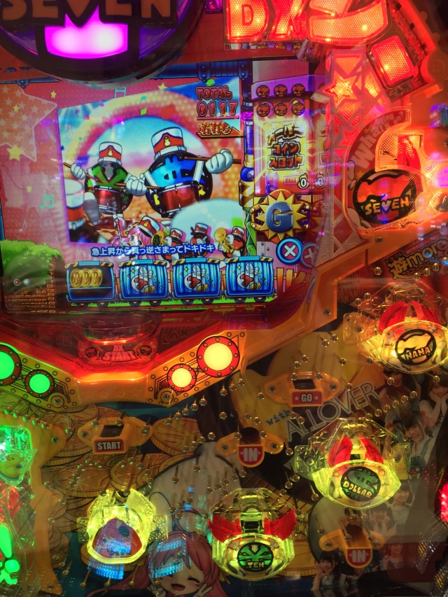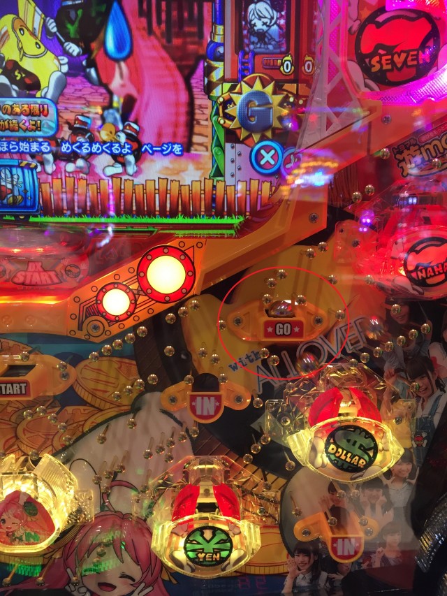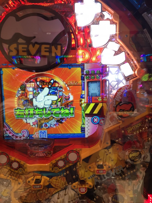 さて、無事に当たりましたらまずは右打ちで黄色7の電役(チューリップ)へ4個玉を入賞させます