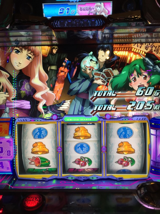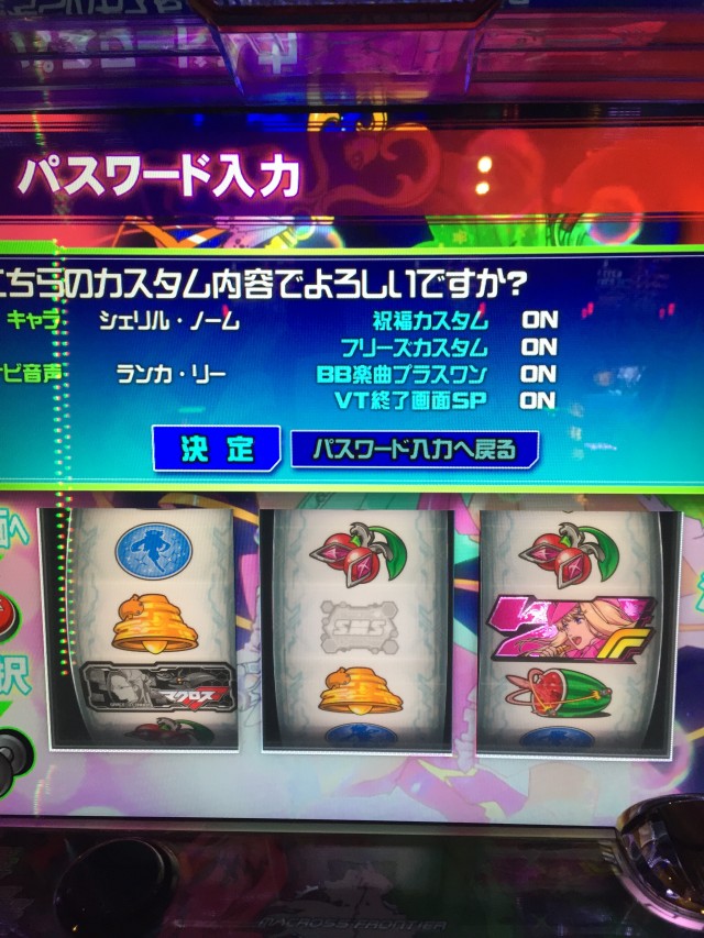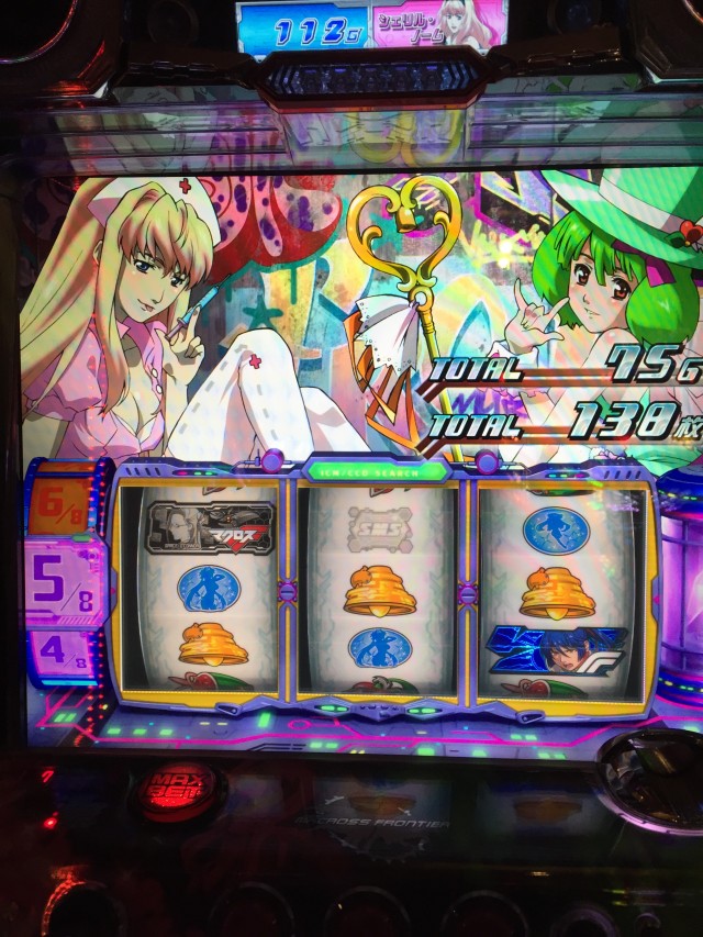 番号は120番と後ろですが、入店してみると新台のマクロス2BLverが空いてましたのでそこから
