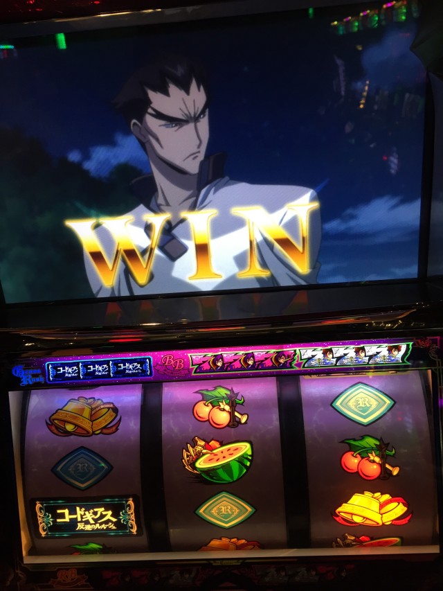 中段チェリーからのスイカ揃わずはリーチ目で 赤7orギアスラッシュという激熱リーチ目です