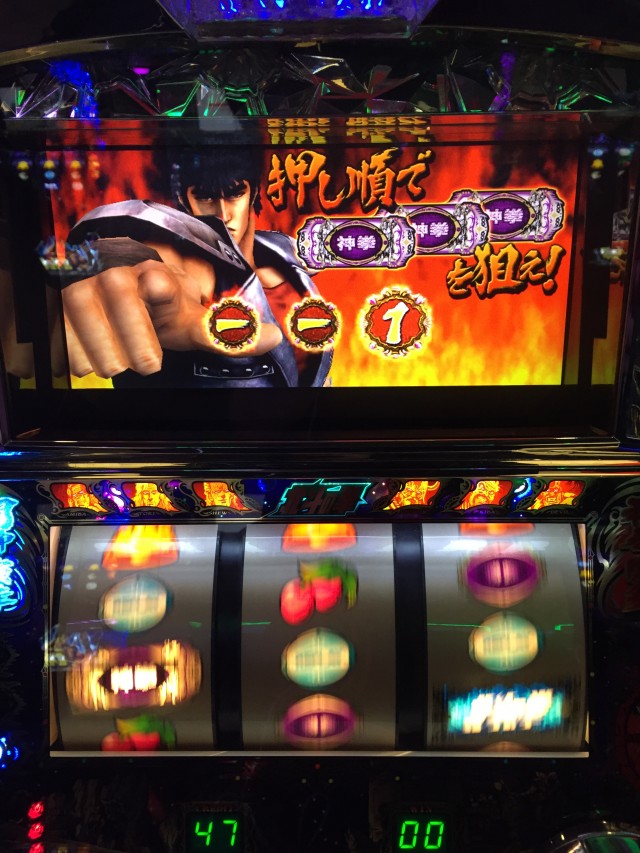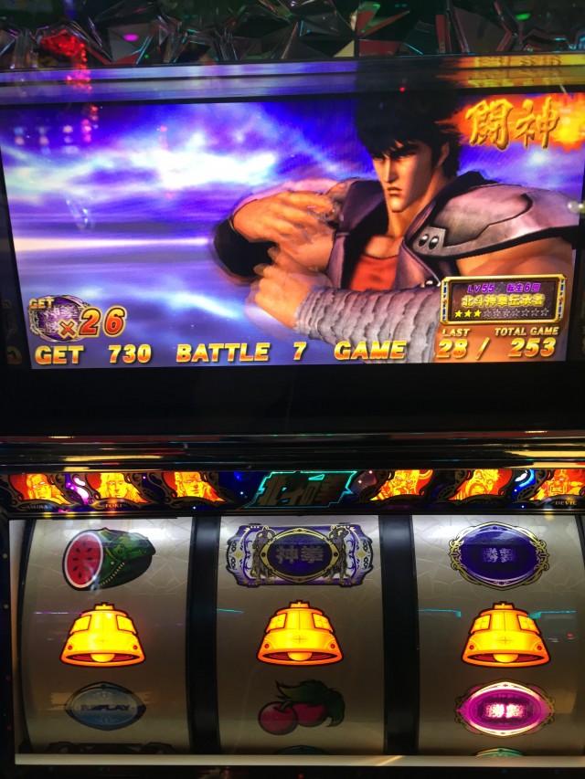 抽選で24番という事でバジ絆が取りたかったですが埋まっており、お店の傾向的に機種の全6や肩列・1/2全6などをやってくるお店だったので階段上がってすぐの北斗転生からスタート
