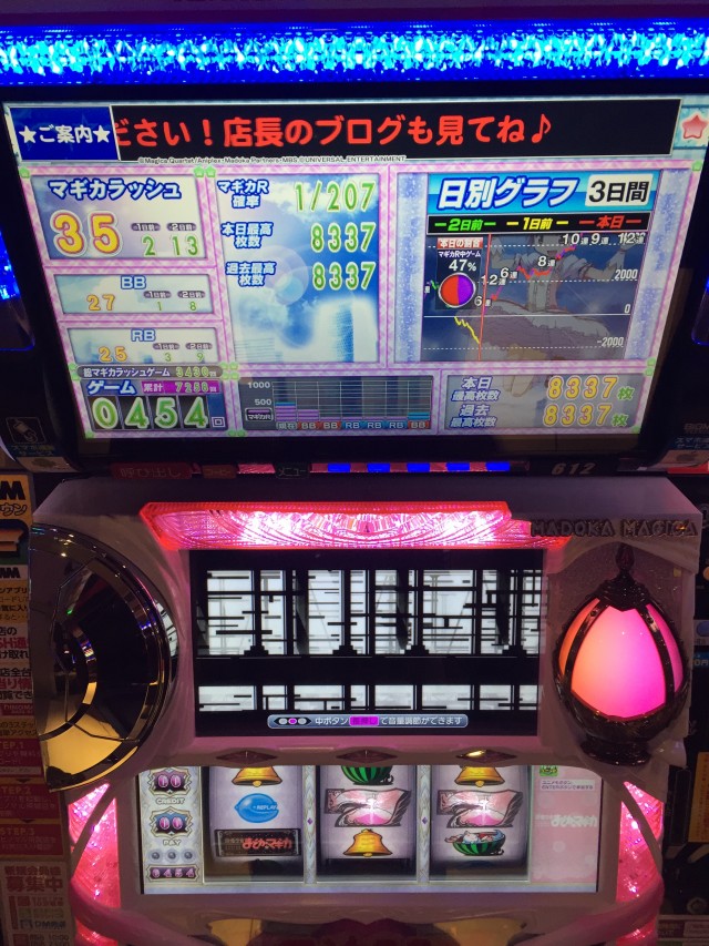 店内の状況はやたら角2が出ていた事と各列から強めの台がいたこと、更に全6であろうバジ2とまどマギが綺麗に全台吹き出ていましたw
