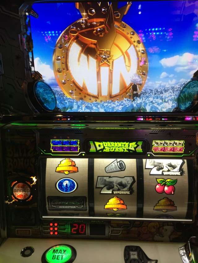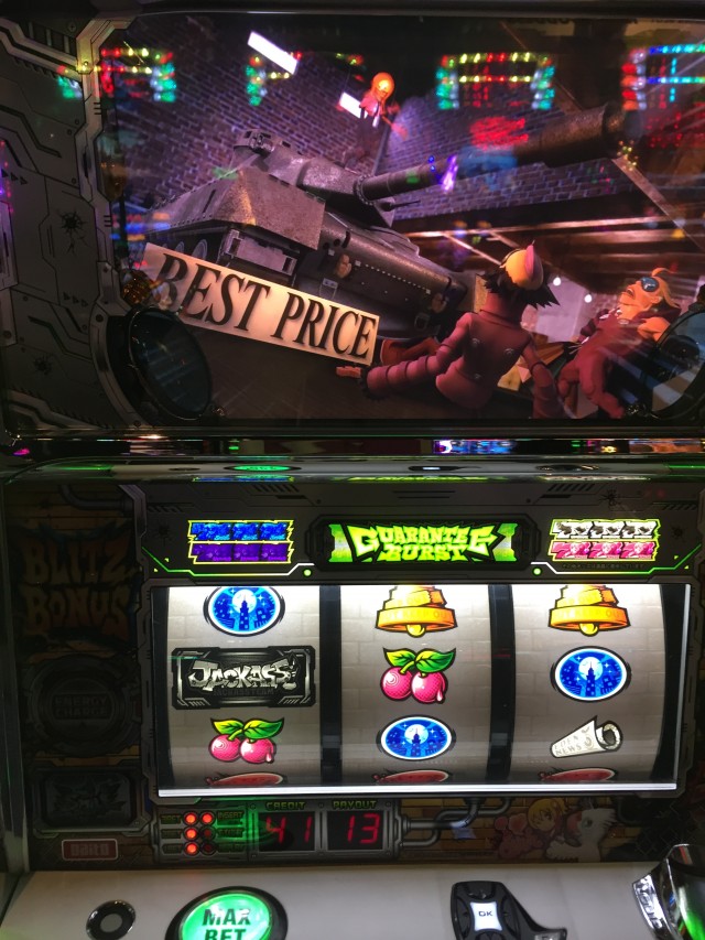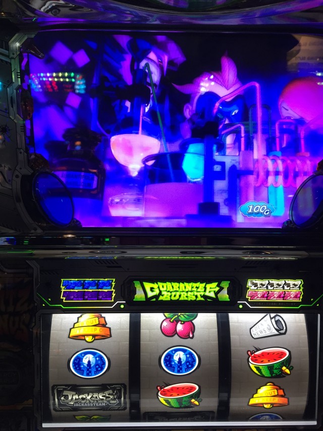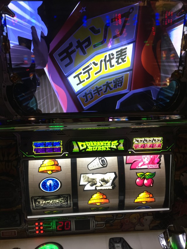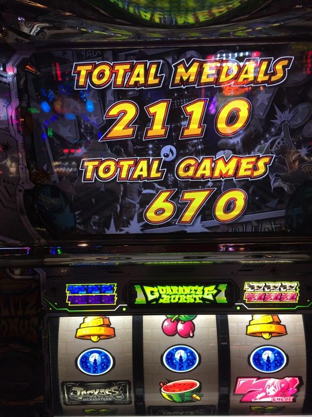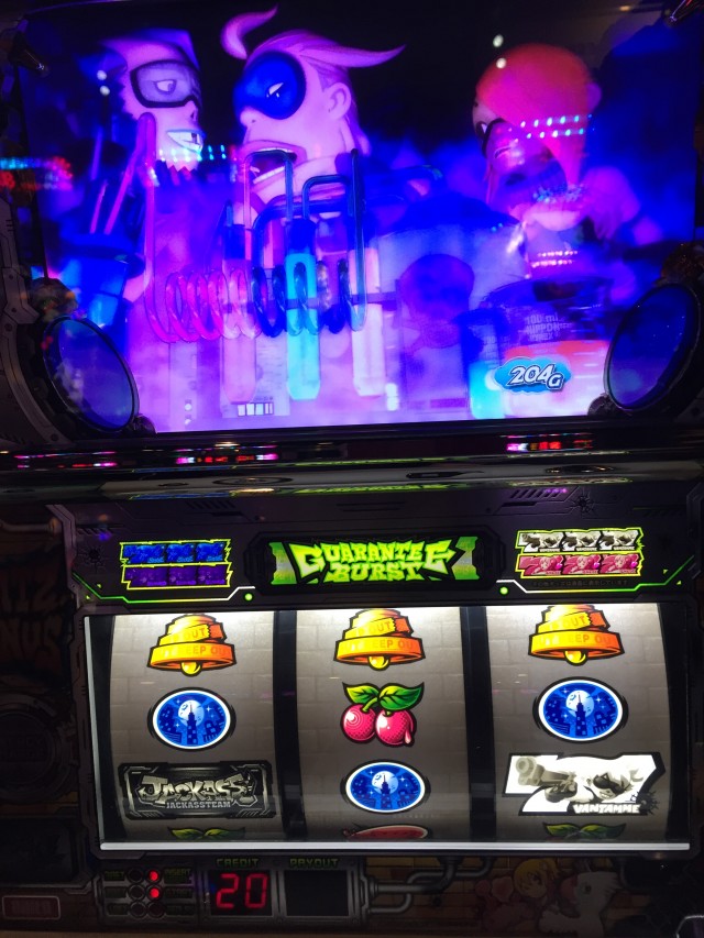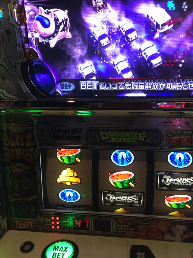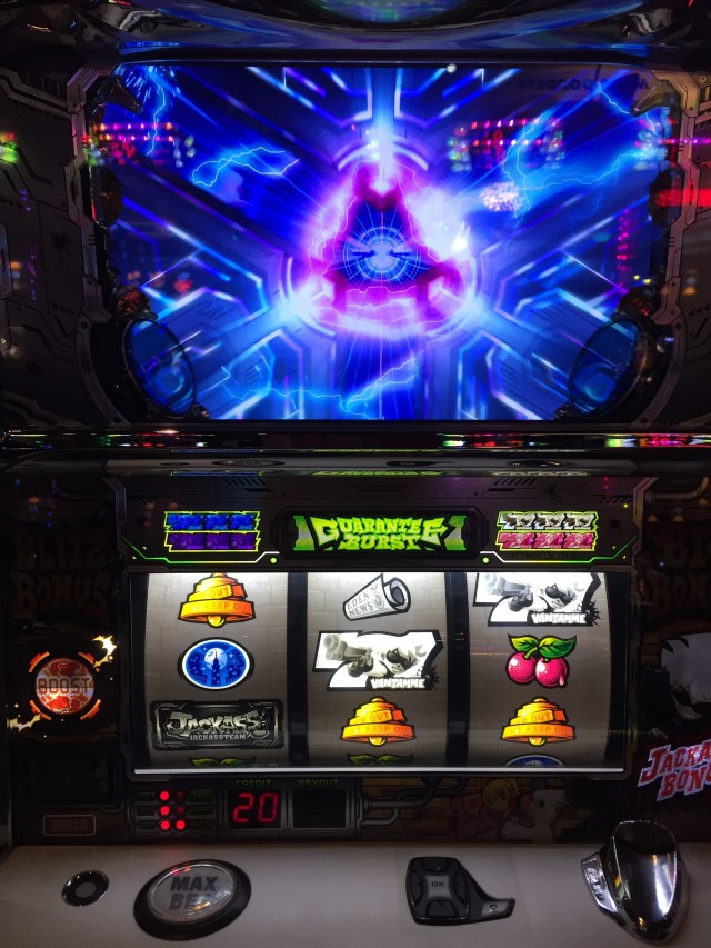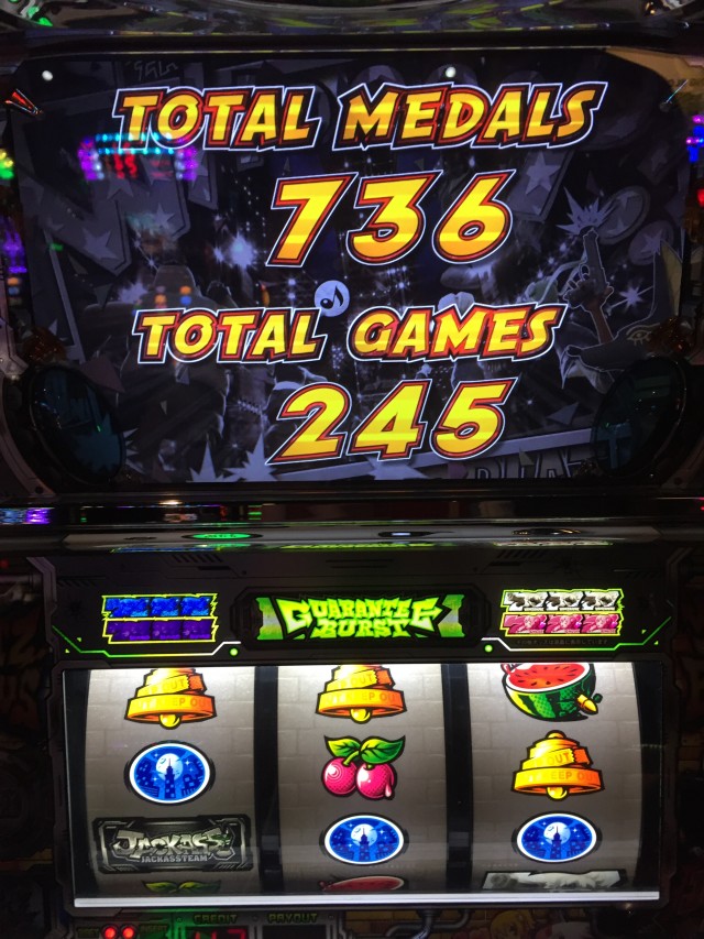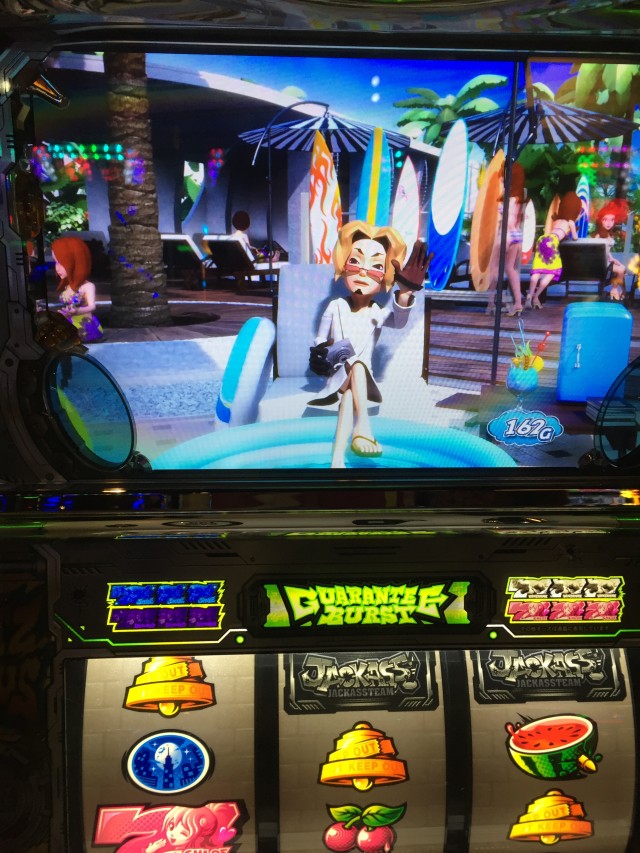 抽選は30番だったのでバラエティには行ける番号、入店してみると長い島にあるバラエティでも人気であろう機種(番長2、ツイン2、ギアスなど)は埋まっていたため奥の島にあるジャッカスチームを確保!
