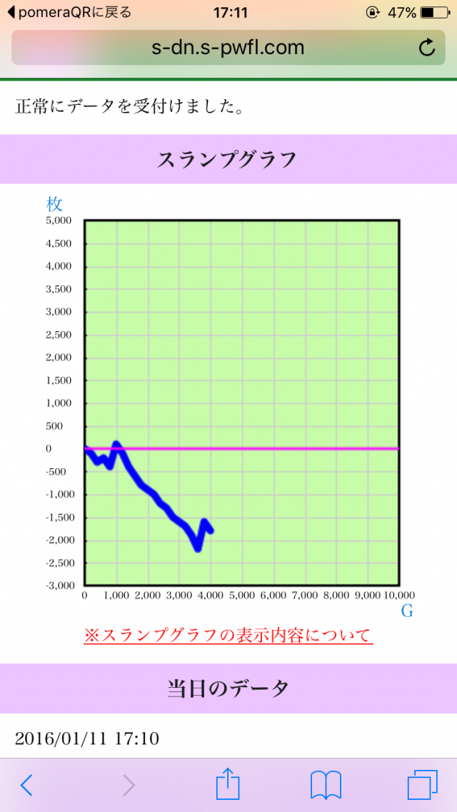 その後もロンフリでBBなど引きましたが小役関連が一気に落ちたところでギブアップ