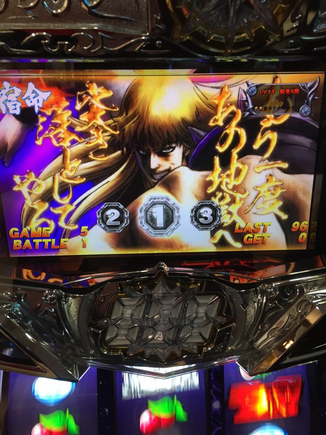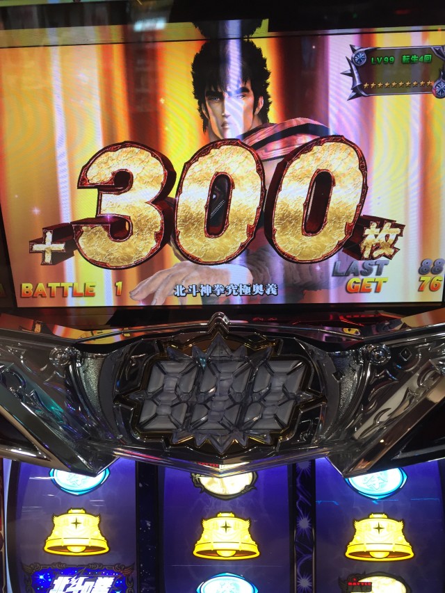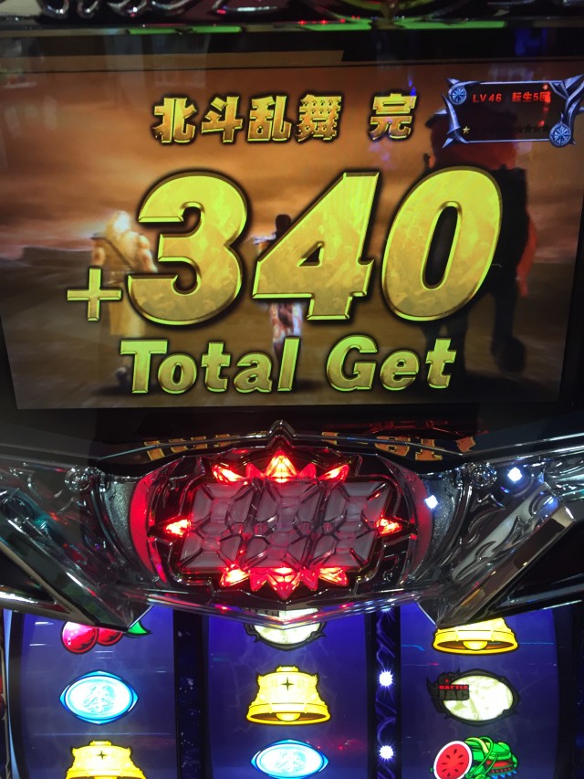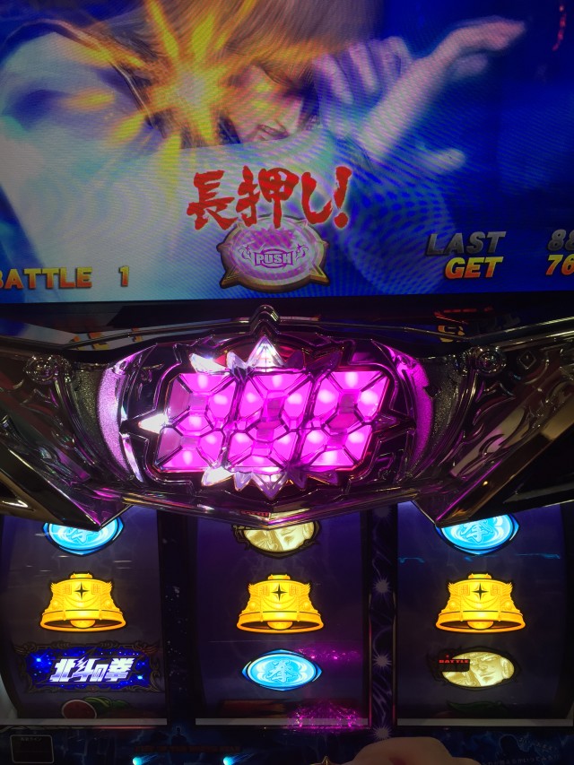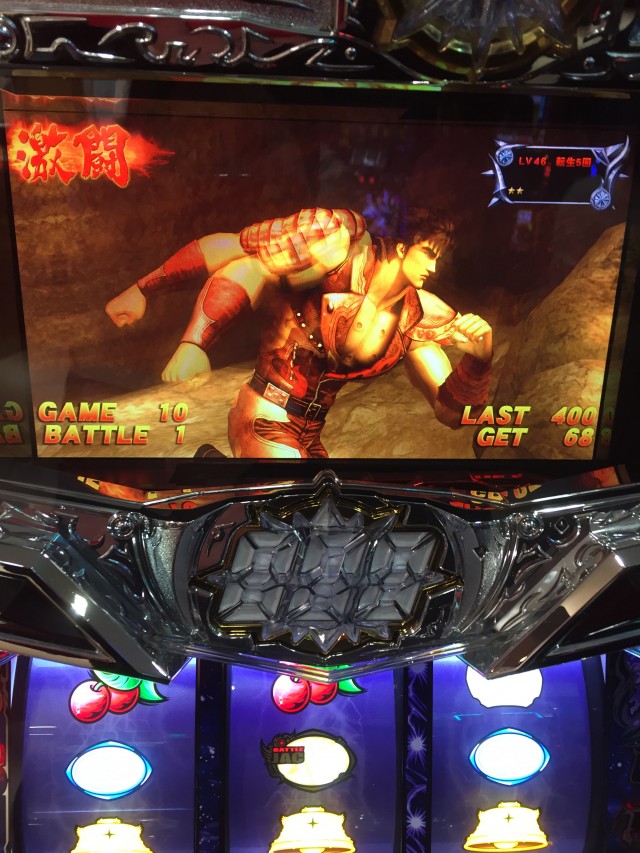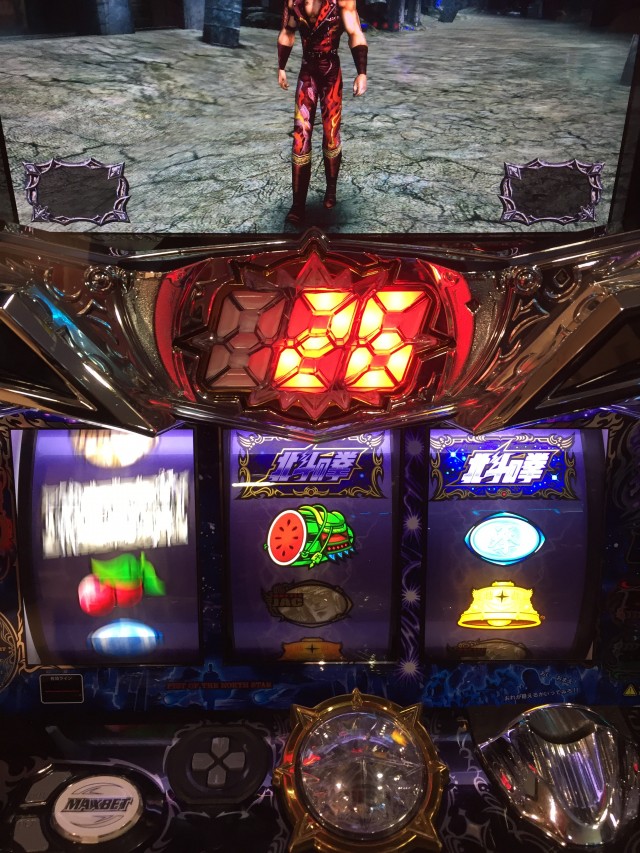 お次は中段チェリーでの変則消灯での当たり、初代北斗でもあった自分の好きなパターンの当たりですw ペシッ アタッ!みたいなw