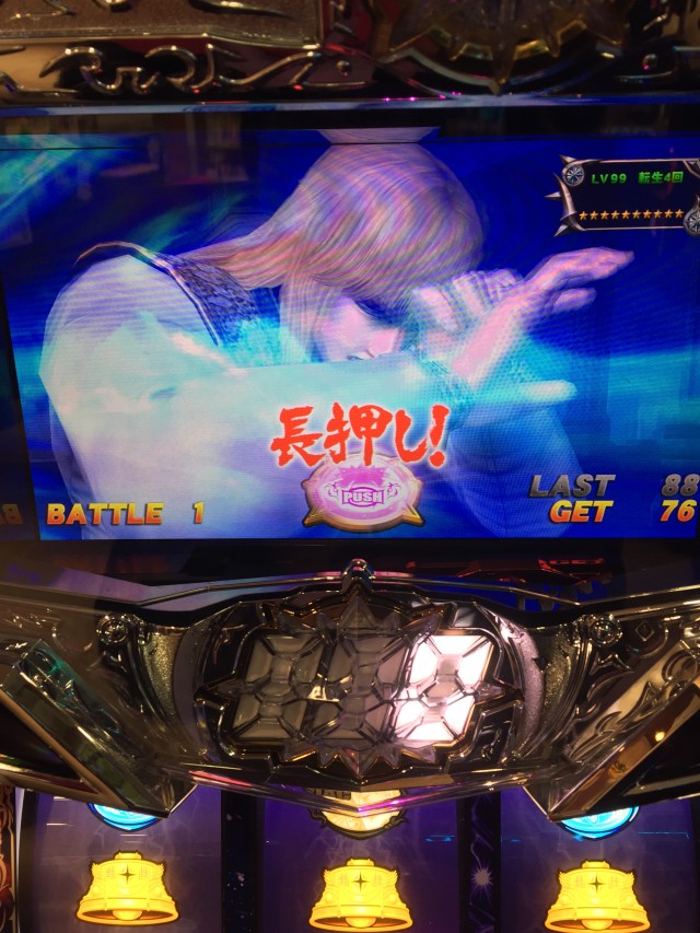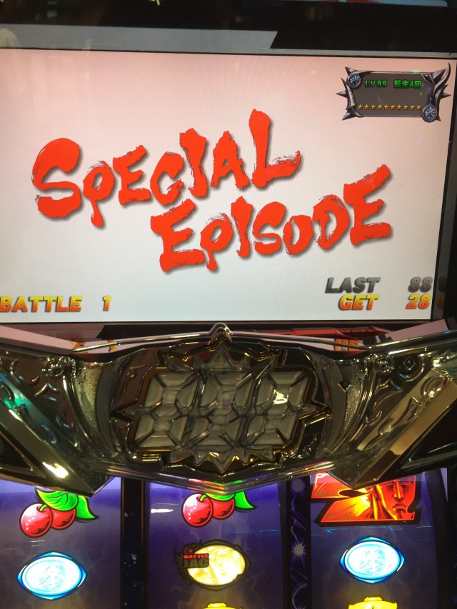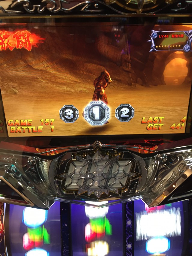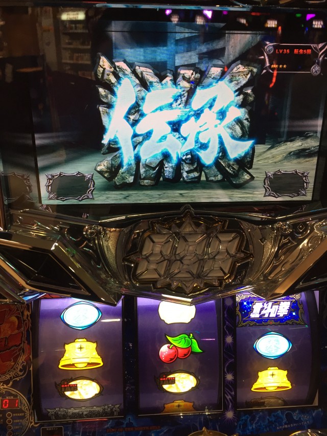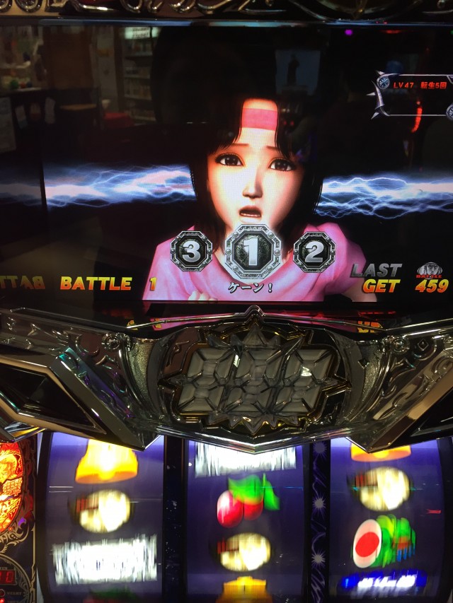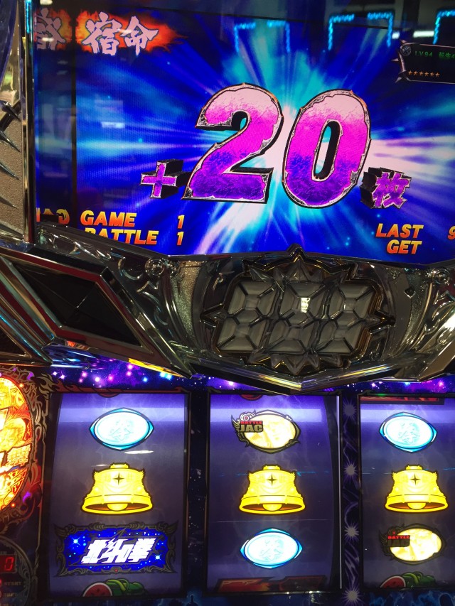 お次は中段チェリーでの変則消灯での当たり、初代北斗でもあった自分の好きなパターンの当たりですw ペシッ アタッ!みたいなw