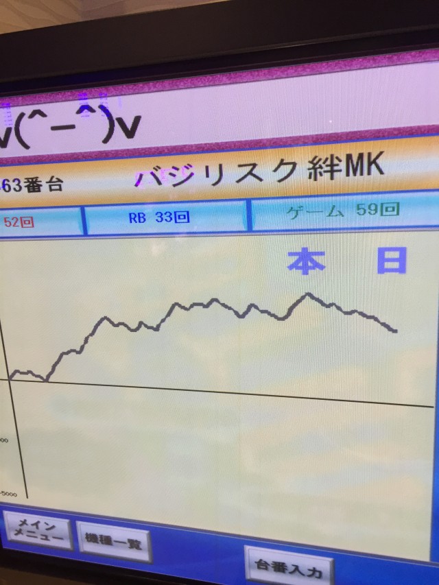約5000枚を獲得し64kプラスとなりました、復帰戦としては大勝利ですね\(^o^)/