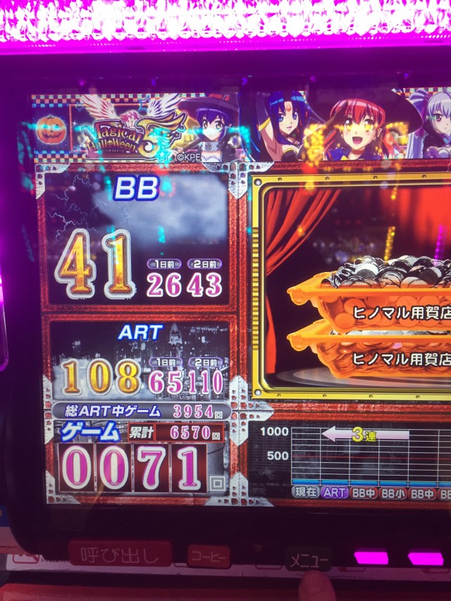 この日打ったマジハロはやたら高確率が長かった印象なのでモードCなどに頻繁に滞在していたものと思われますね。