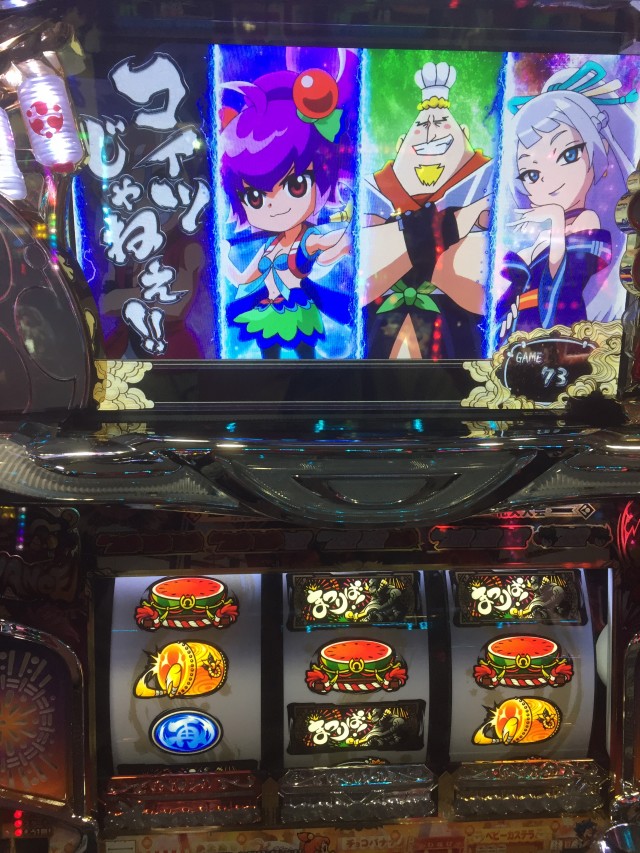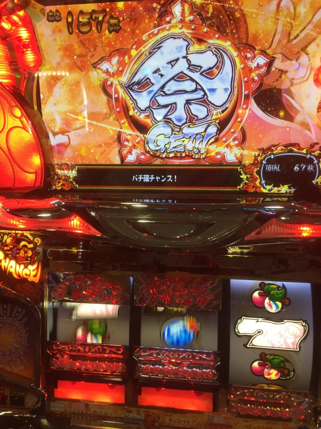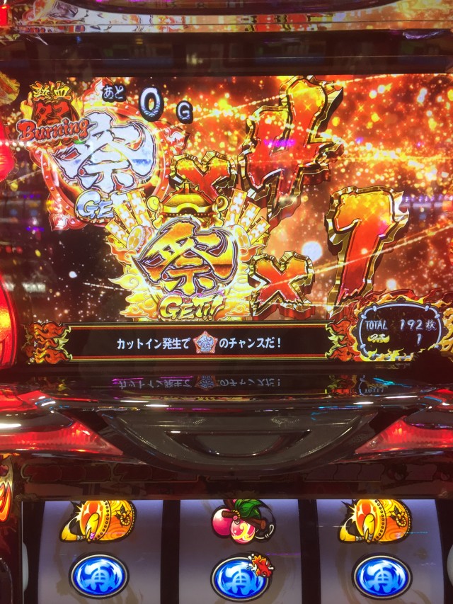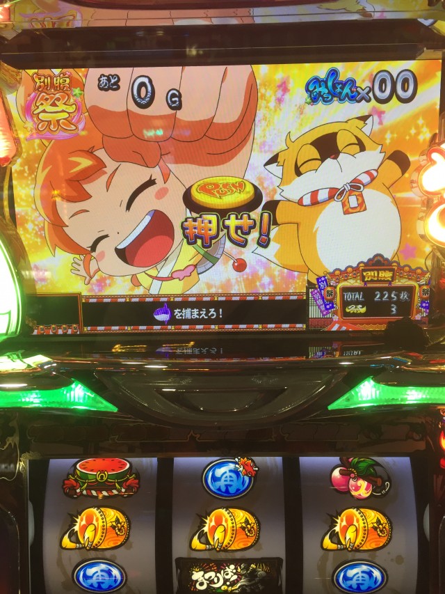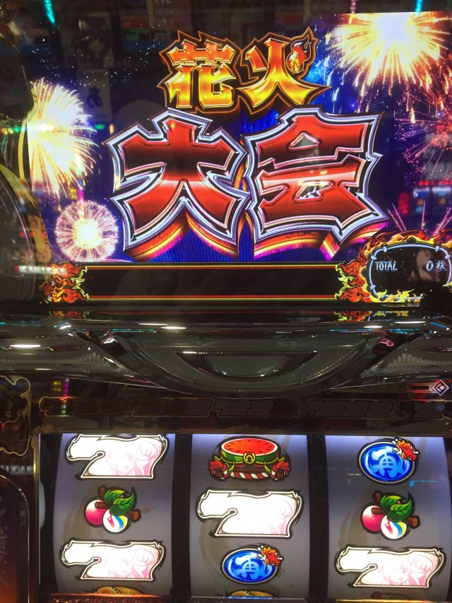 ここで謎の停止系から13枚払い出され花火大会へ、どうやらW強チャンス目orまつりばチャンス目を引いた模様でしたね。ちゃんと目押ししておけば良かった\(^o^)/