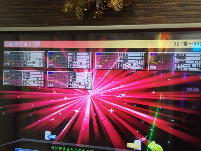 この日は結局戦国乙女2あたりが当たり機種っぽかったですね、それ以外にもピンポイントで入ってそうでしたけどね