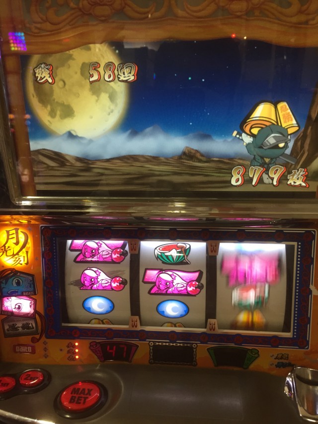 気を取り直して再度前兆へ、2回ボーナス被せて前兆ギリギリまで行ったのに再度前兆入り直す時点で熱いのが初代忍魂でして