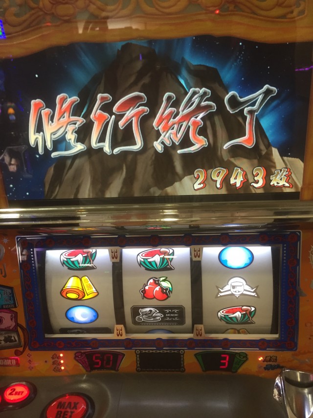 相変わらずの番号だったので台は取らずぐるぐるーと徘徊、ジャグラーなんかちょろっとこすってる時に台移動禁止、共有禁止に気づく←変わったのね