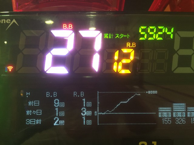 こんなBB2確なんかも拝んでました(後ろに稲光りがないのにボーナス図柄テンパイはBB確定)