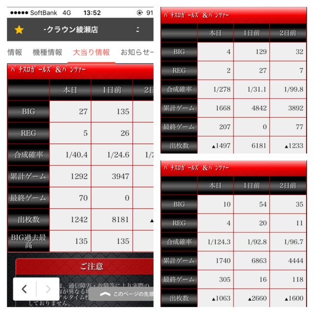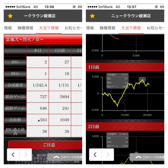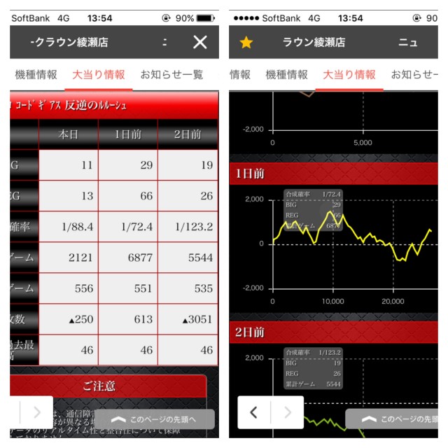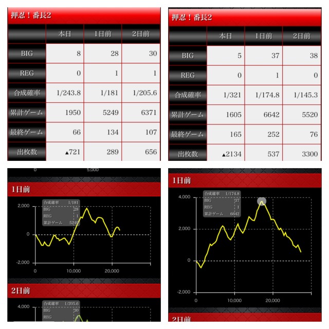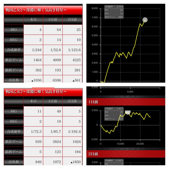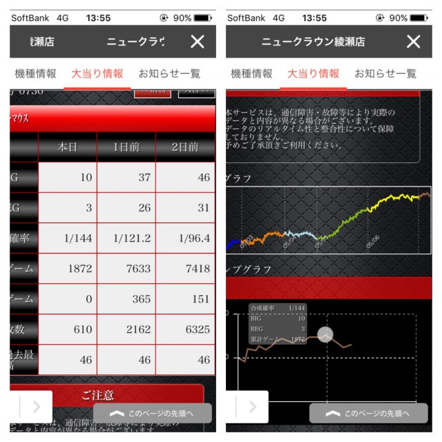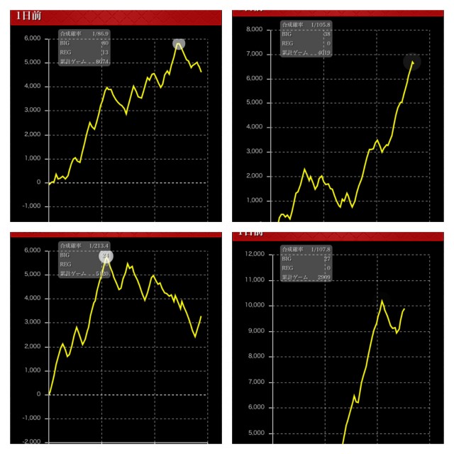 店内の写メは早めだったので今回は翌日にスクショしたスランプグラフなどから考察していこうと思います。※1日前となっているのが6日のデータです。