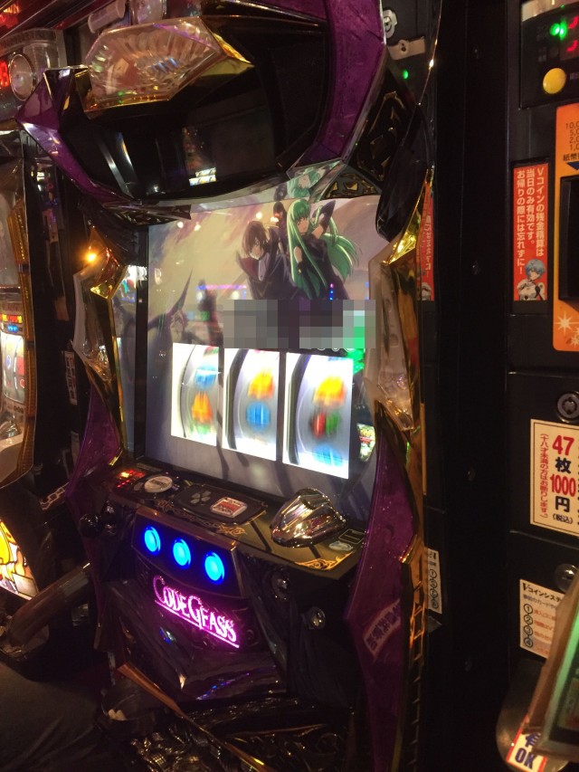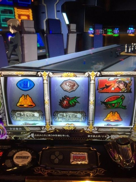 今回のギアス筐体は偽物語と同様指をスライドさせて止められる筐体でして高速で図柄を止められるので、遊び要素として高速揃えの準備目をw
