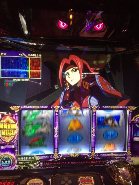 そこそこ大音量の今回のギアス、周りの騒音に紛れていることがありますがリベリオンアタック中に楽曲変化している事があります!ART中に流れている曲ですね。実践上ART当選100%なので確定演出かなーと。